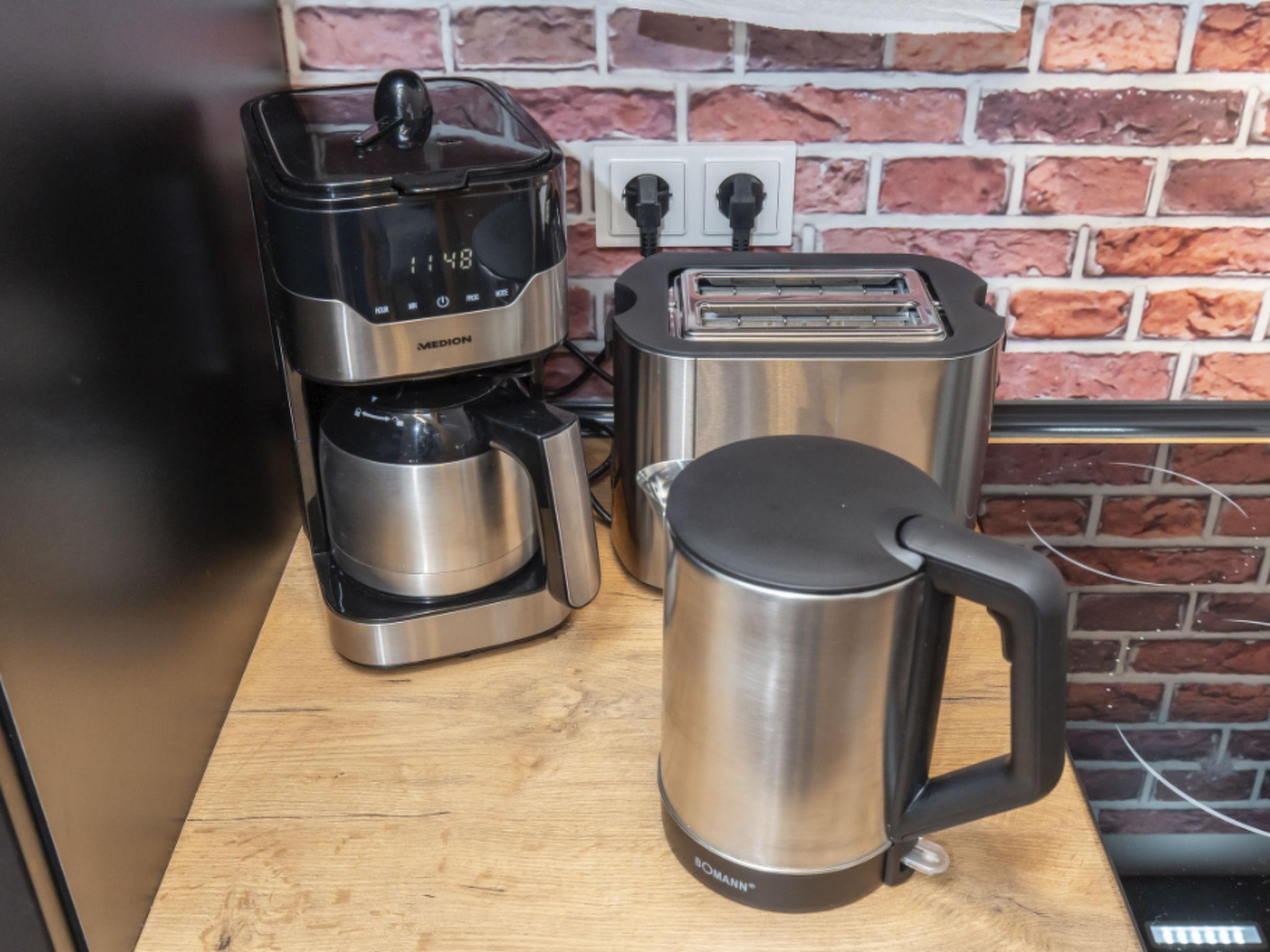 Refrigerator, oven, dishwasher, ceramic hob with 4 hobs, coffee machine with filter insert,