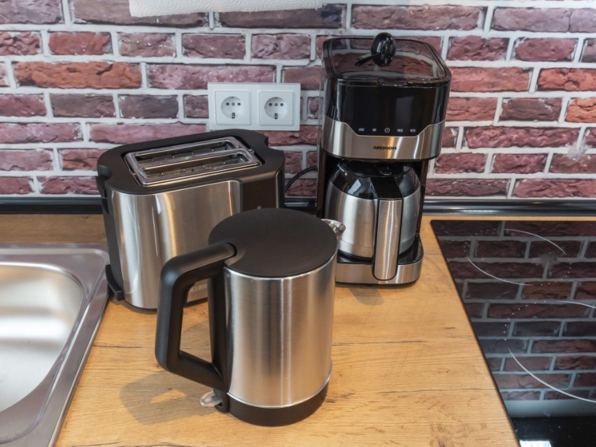 Refrigerator, oven, dishwasher, ceramic hob with 4 hobs, coffee machine with filter insert,