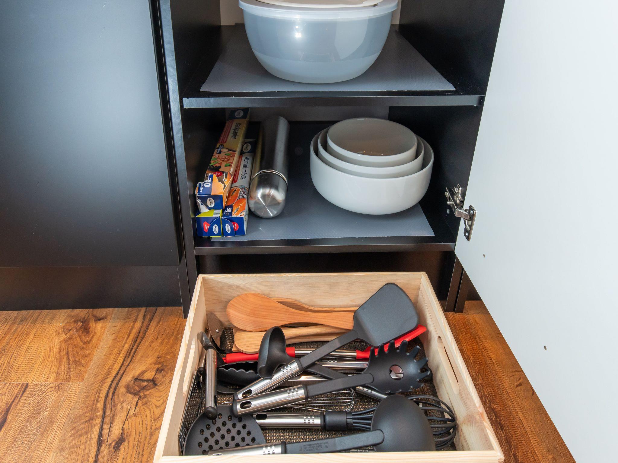 kettle, toaster, pots, pans, bowls, colander and much more.