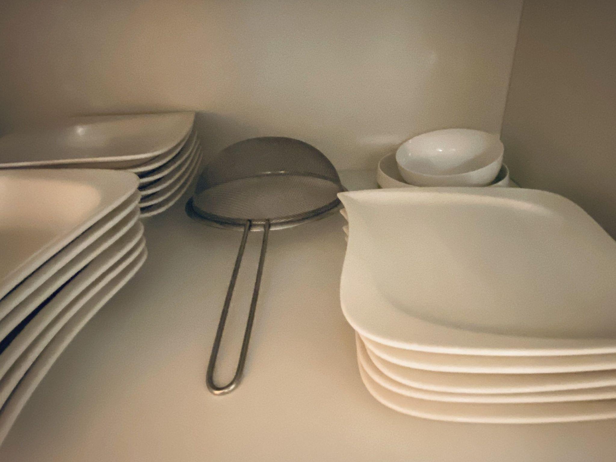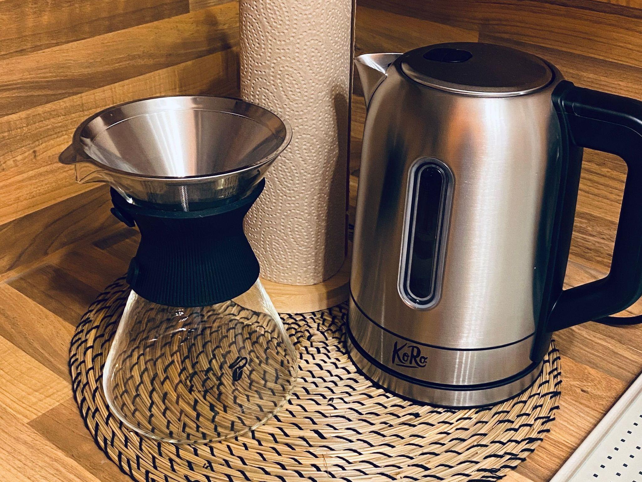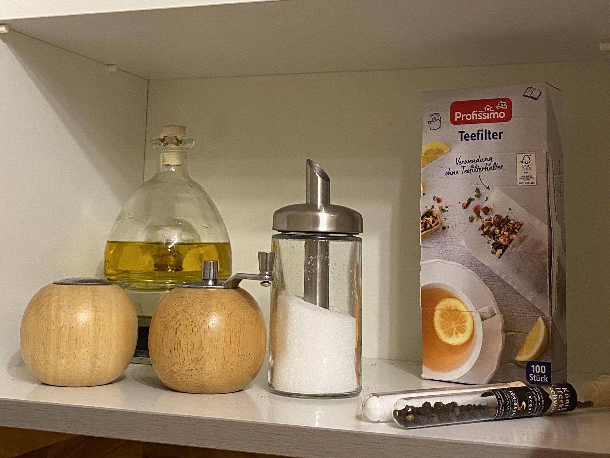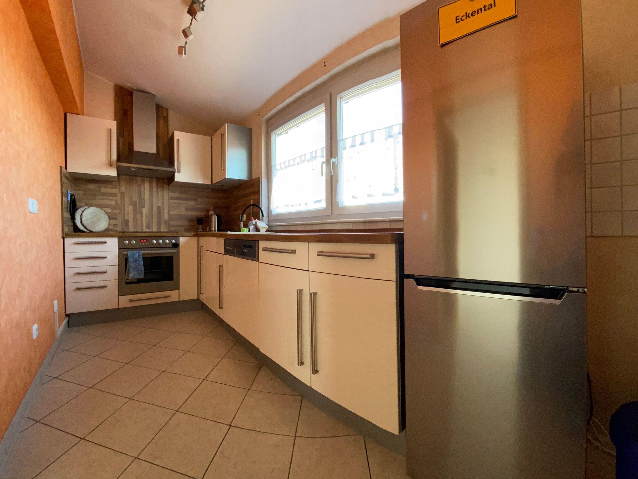 Die voll ausgestattete Küche verfügt über Herd, Backofen, Geschirrspüler, eine neue Mikrowelle und eine neue Kühl-/Gefrierkombination. Weitere Annehmlichkeiten wie Kaffeezubereiter, Toaster, Wasserkocher und umfangreiches Geschirr sind ebenfalls vorhanden.