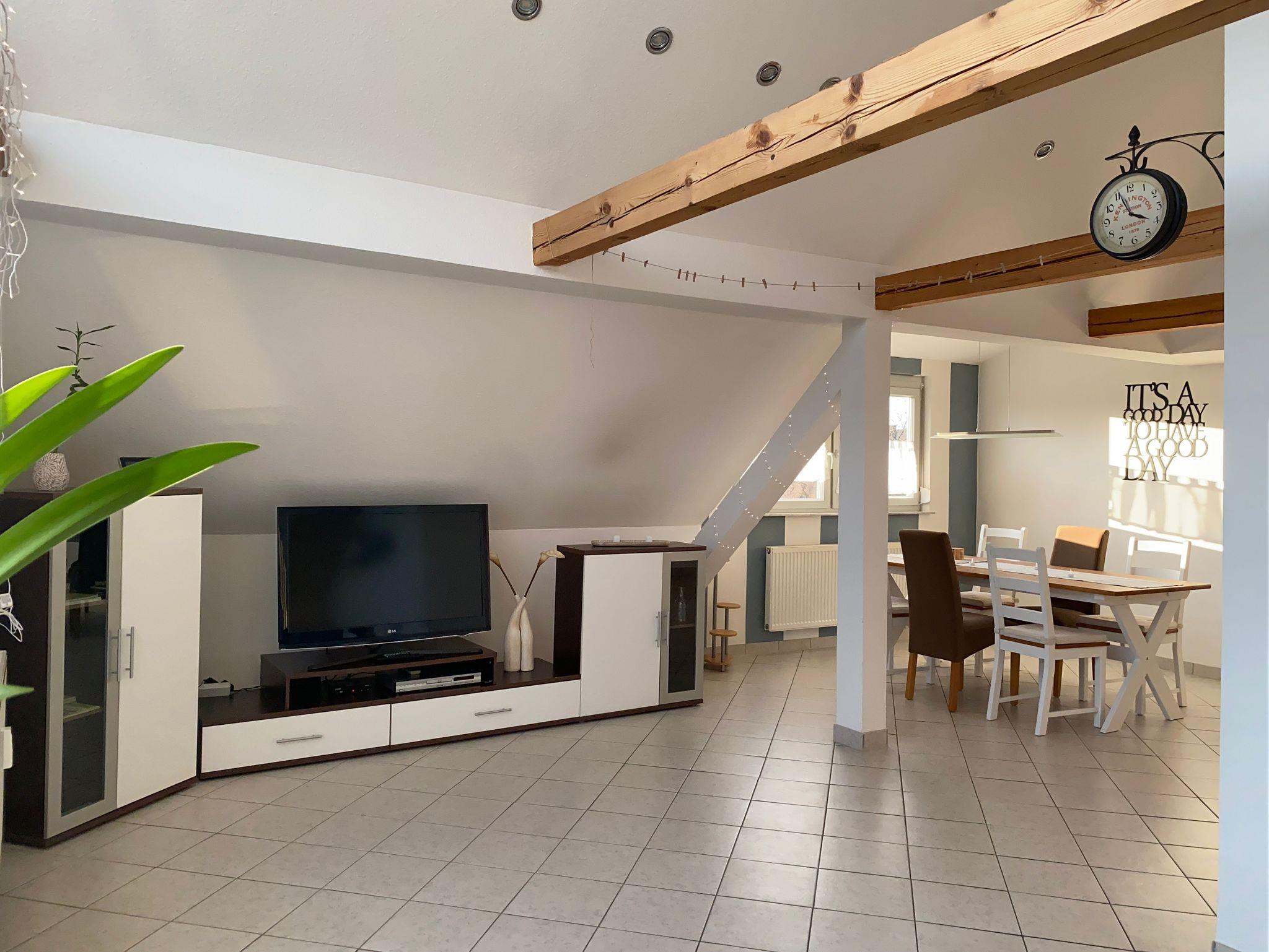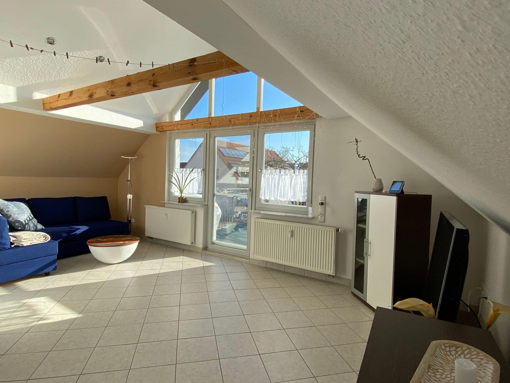 Unsere stilvoll eingerichtete Nichtraucher-Ferienwohnung beeindruckt durch ihre offene Bauweise. Die Decke ist bis zum Dachstuhl offen und die großzügigen Fenster ziehen sich bis in die Dachspitze. Sie fluten die Räume mit Licht und schaffen dadurch eine luftige, helle und warme Atmosphäre.