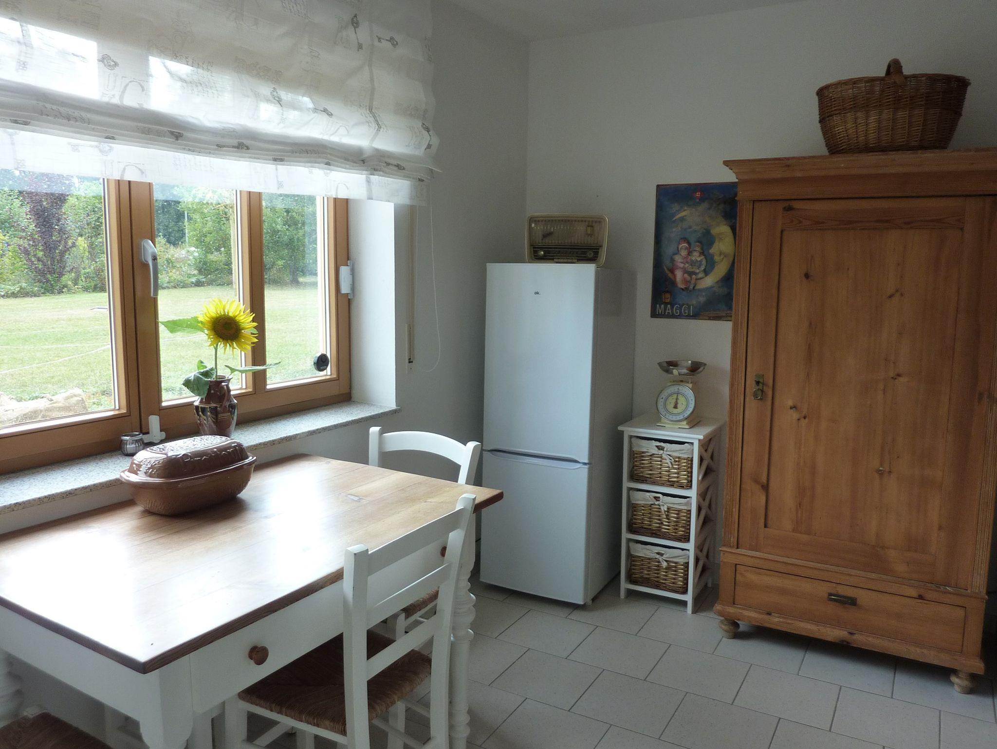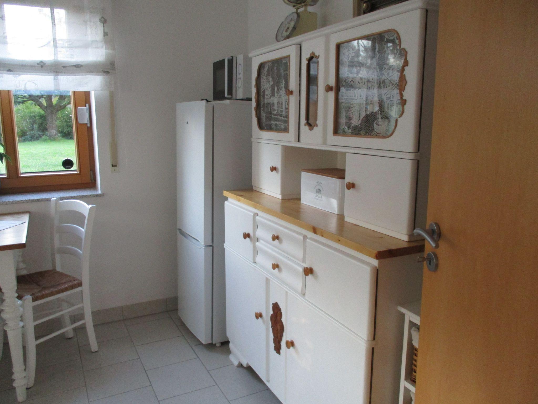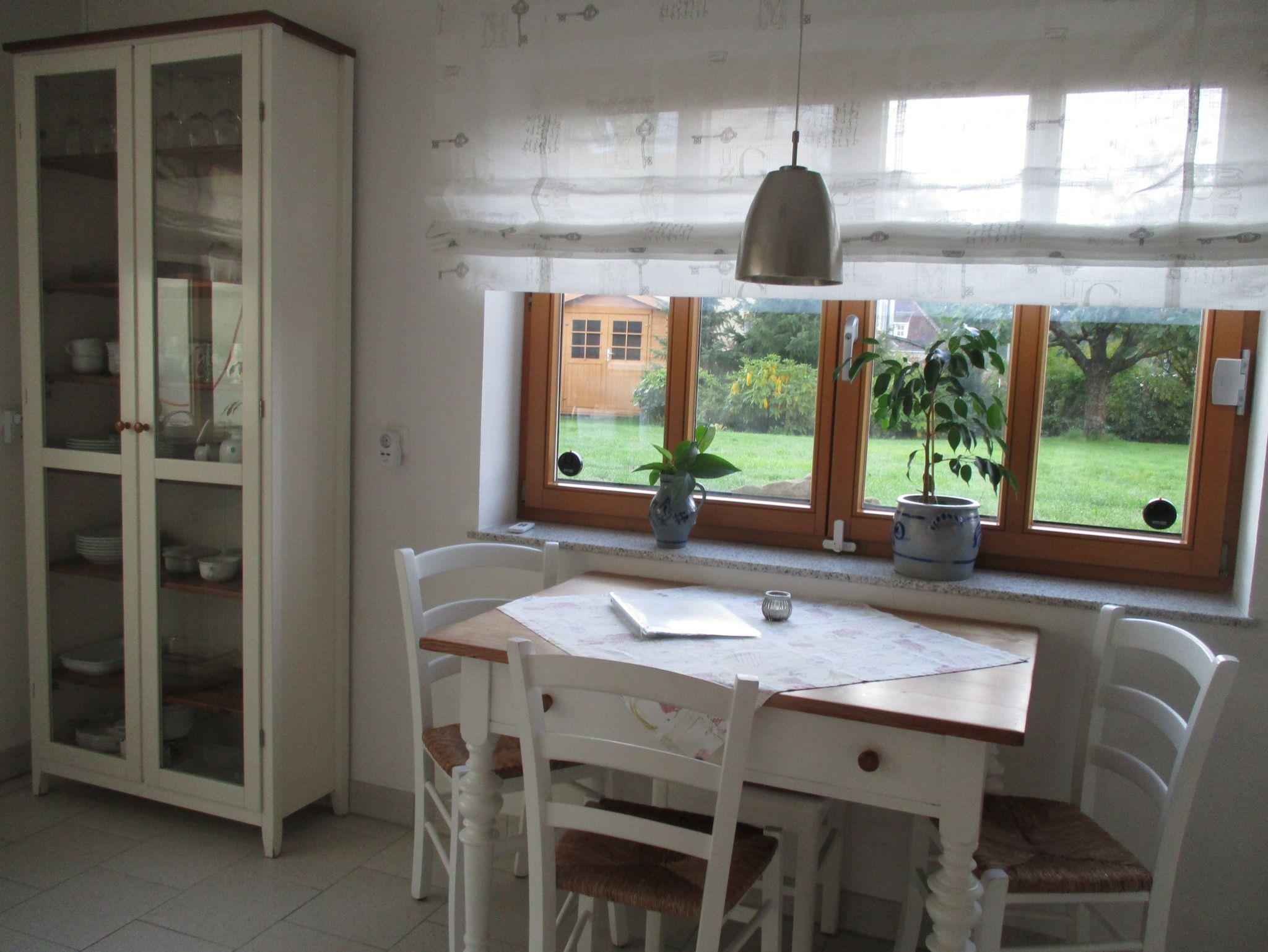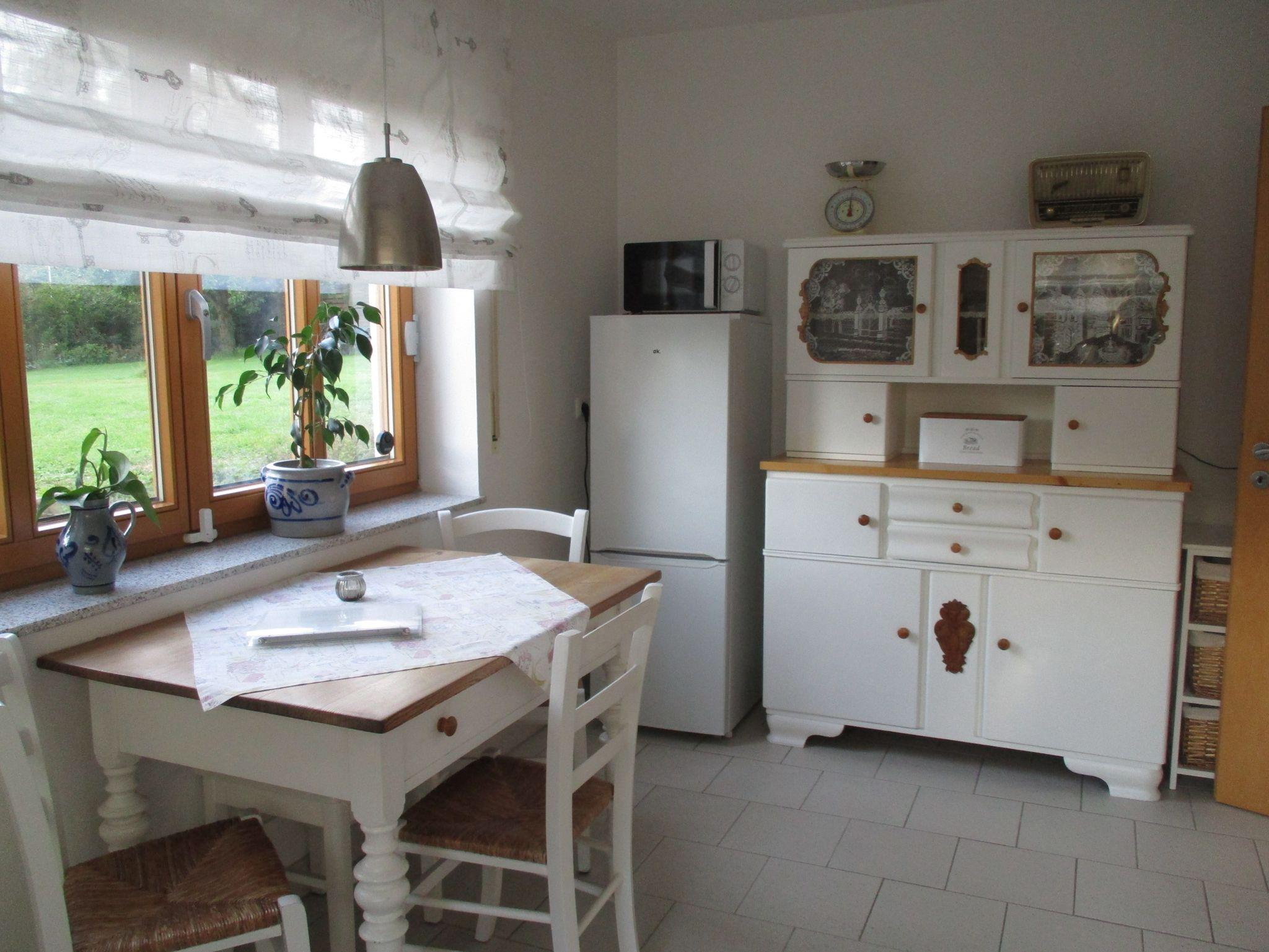 Die Wohnung hat ein Schlafzimmer mit Doppelbett und Kleiderschrank (zwei Morgenmäntel stehen zu Ihrer Verfügung). Das Wohnzimmer mit Schreibtisch, Sitzecke, kleiner Bibliothek, Fernseher mit DVD Player, CD-Player, Schreibtisch und Gesellschaftsspielen ist auch bei schlechtem Wetter ein gemütlicher Aufenthaltsort. In der separaten Wohnküche finden Sie alles, was man vom Frühstück bis zum Abendessen braucht, Kühlschrank und Gefrierschrank (mit drei Fächern), Geschirrspüler, Herd mit Backofen, Mikrowelle und dazu einen schönen Sitzplatz mit Blick in den Garten.