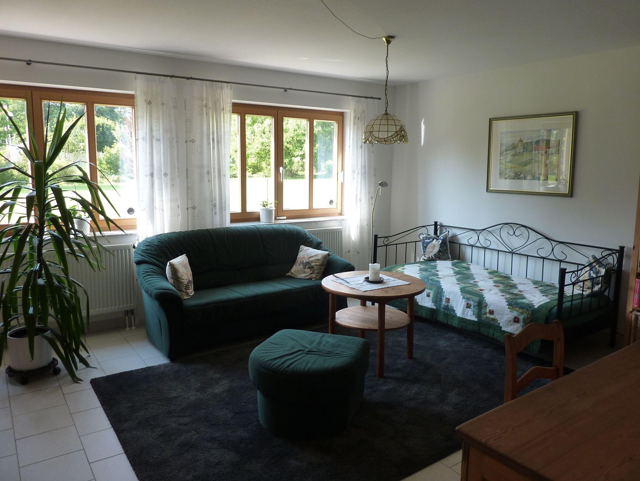 Vor den Toren Bayreuths liegt das großzügige helle Appartment mit Gartenblick und Terrasse.