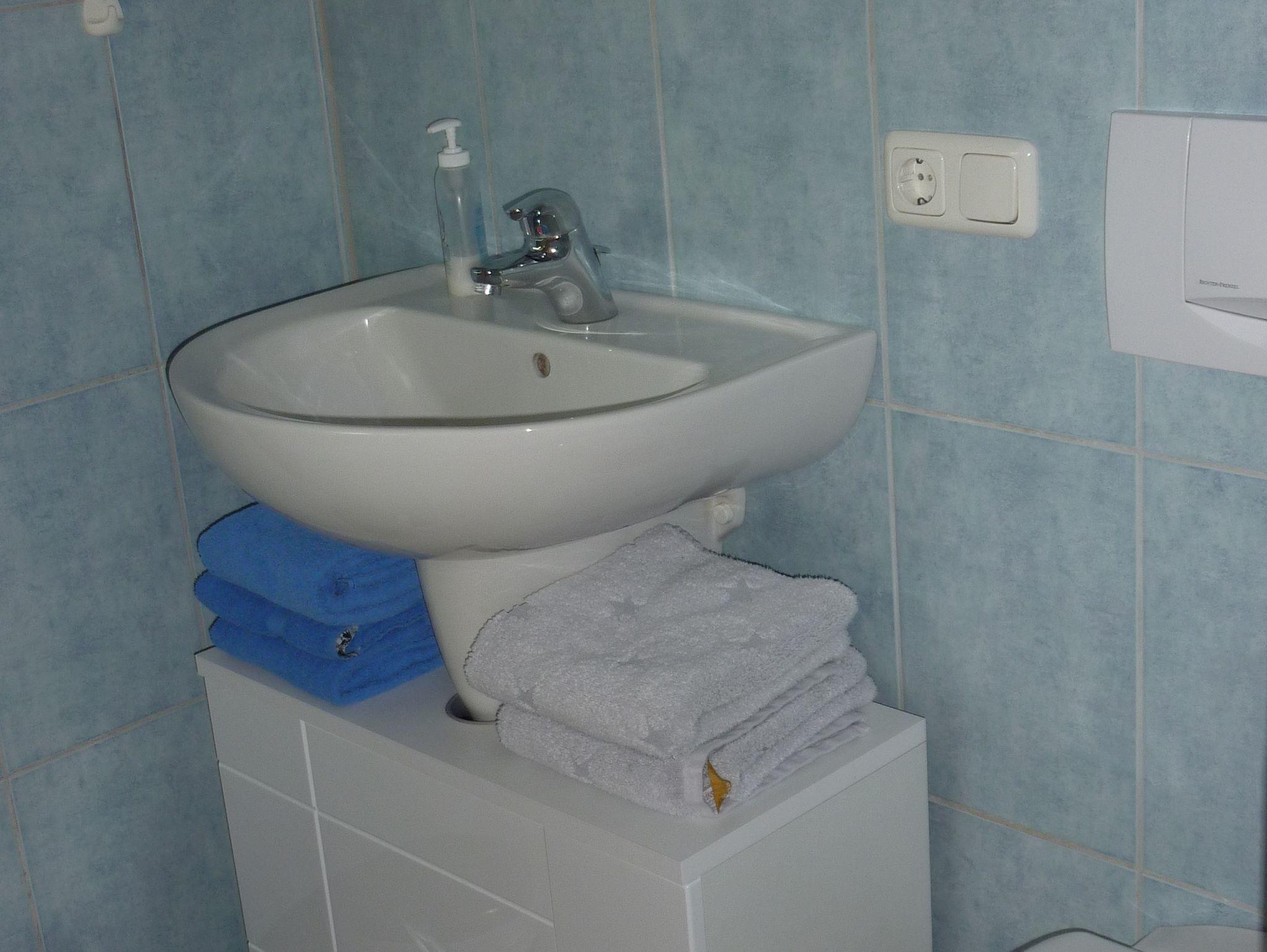 Das Bad mit Dusche und WC (Handtücher ausreichend vorhanden) lässt keine Wünsche offen. Waschmachine und Trockner, die gegen eine kleine Gebühr gerne genützt werden können.