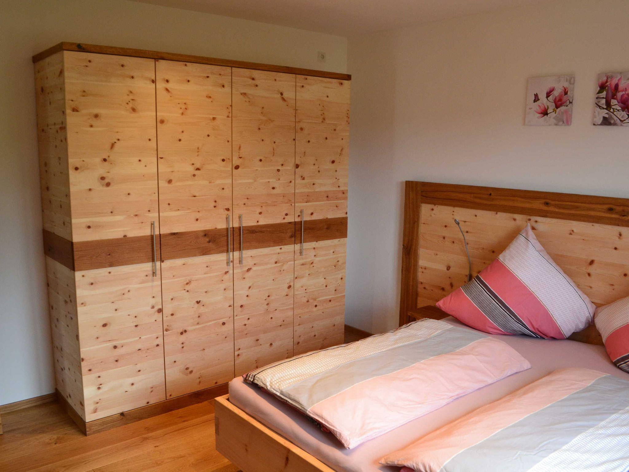 Bei den Schlafzimmermöbeln wurde das Holz unbehandelt belassen, damit sich der Duft der Zirbe entfalten kann.
