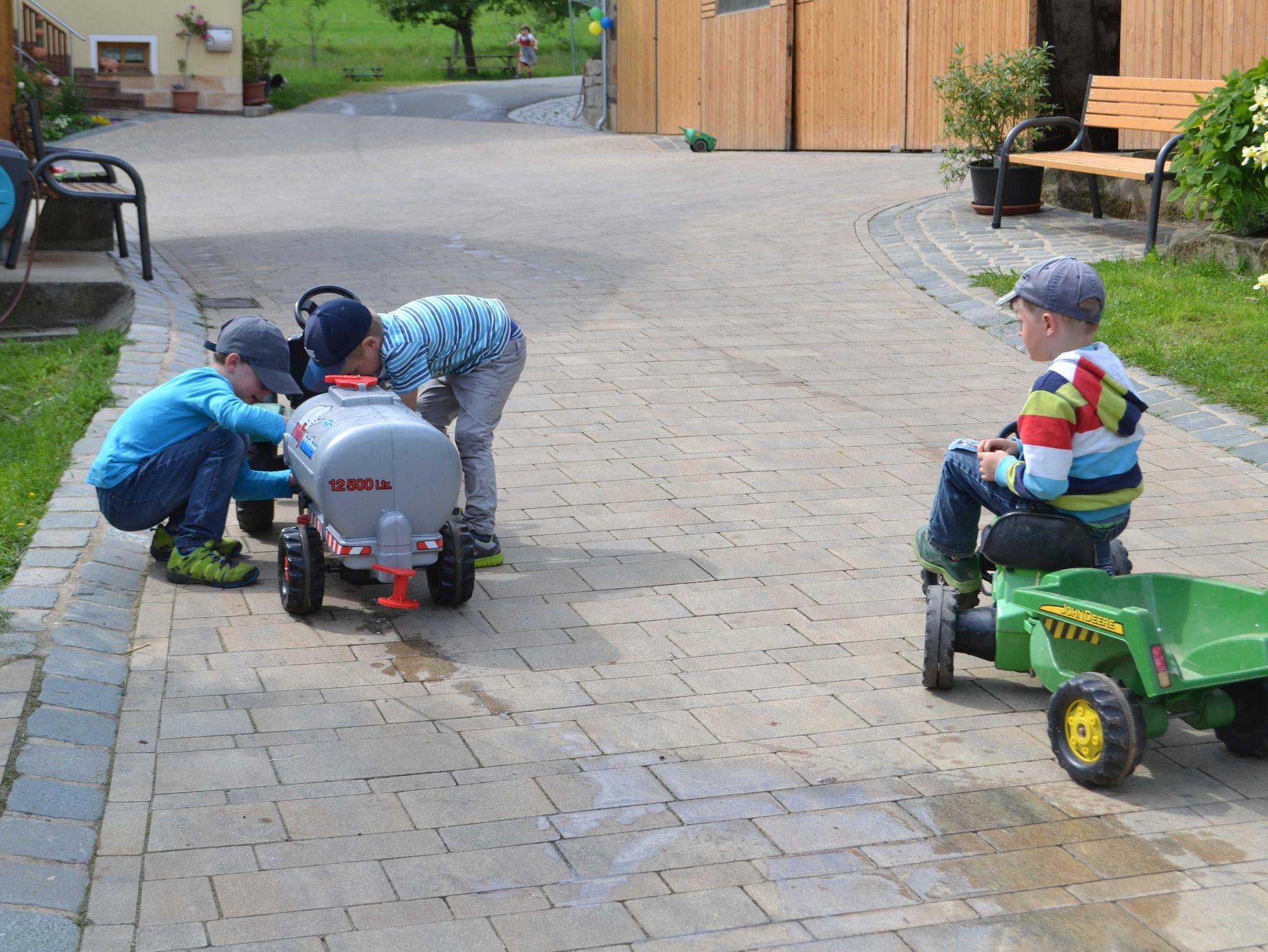 Spielplatz und jede Menge an Fahrzeuge zum fahren und spielen.