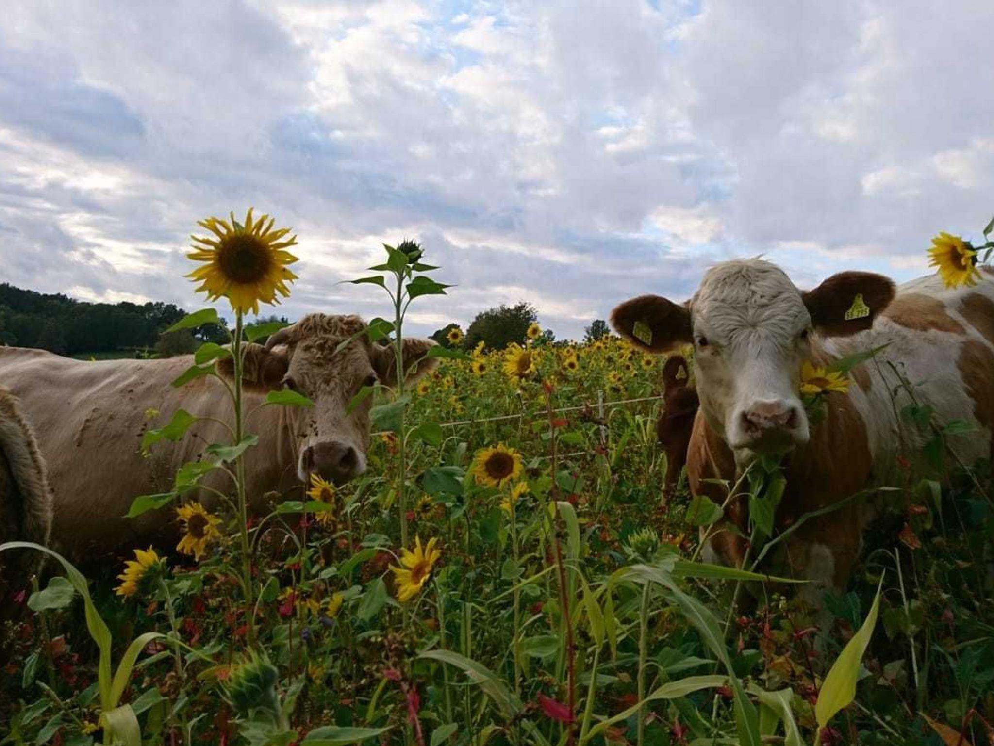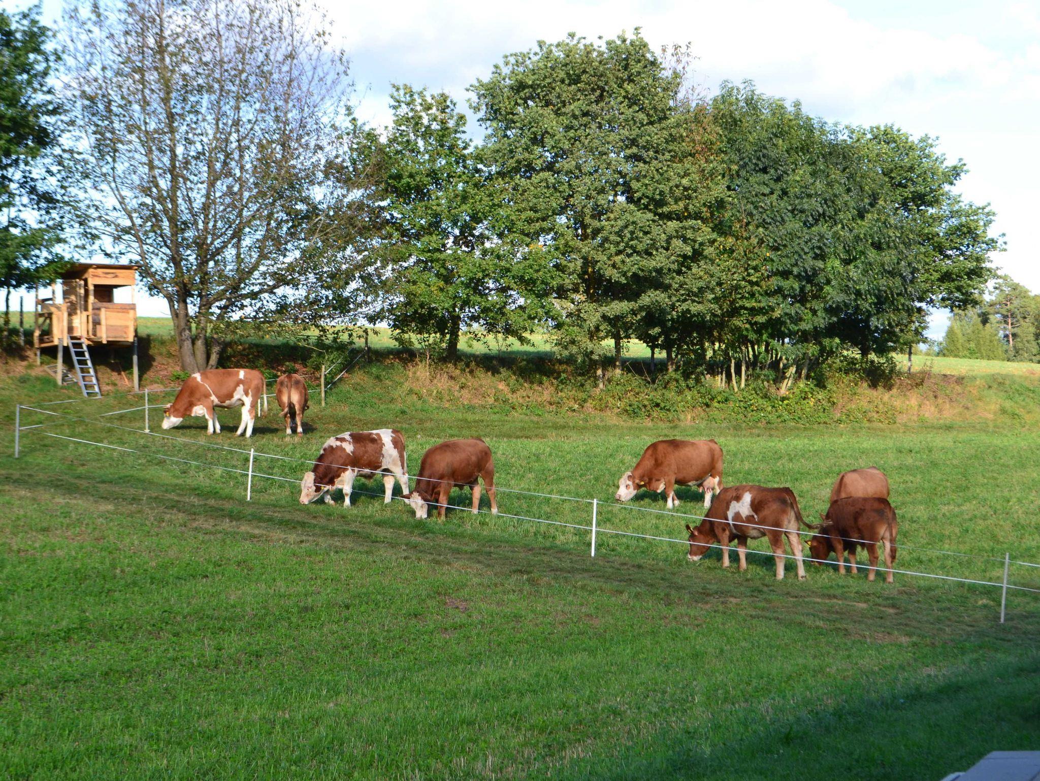 und Garten mit freiem Talblick auf umliegende Wiesen, Kuhweiden,