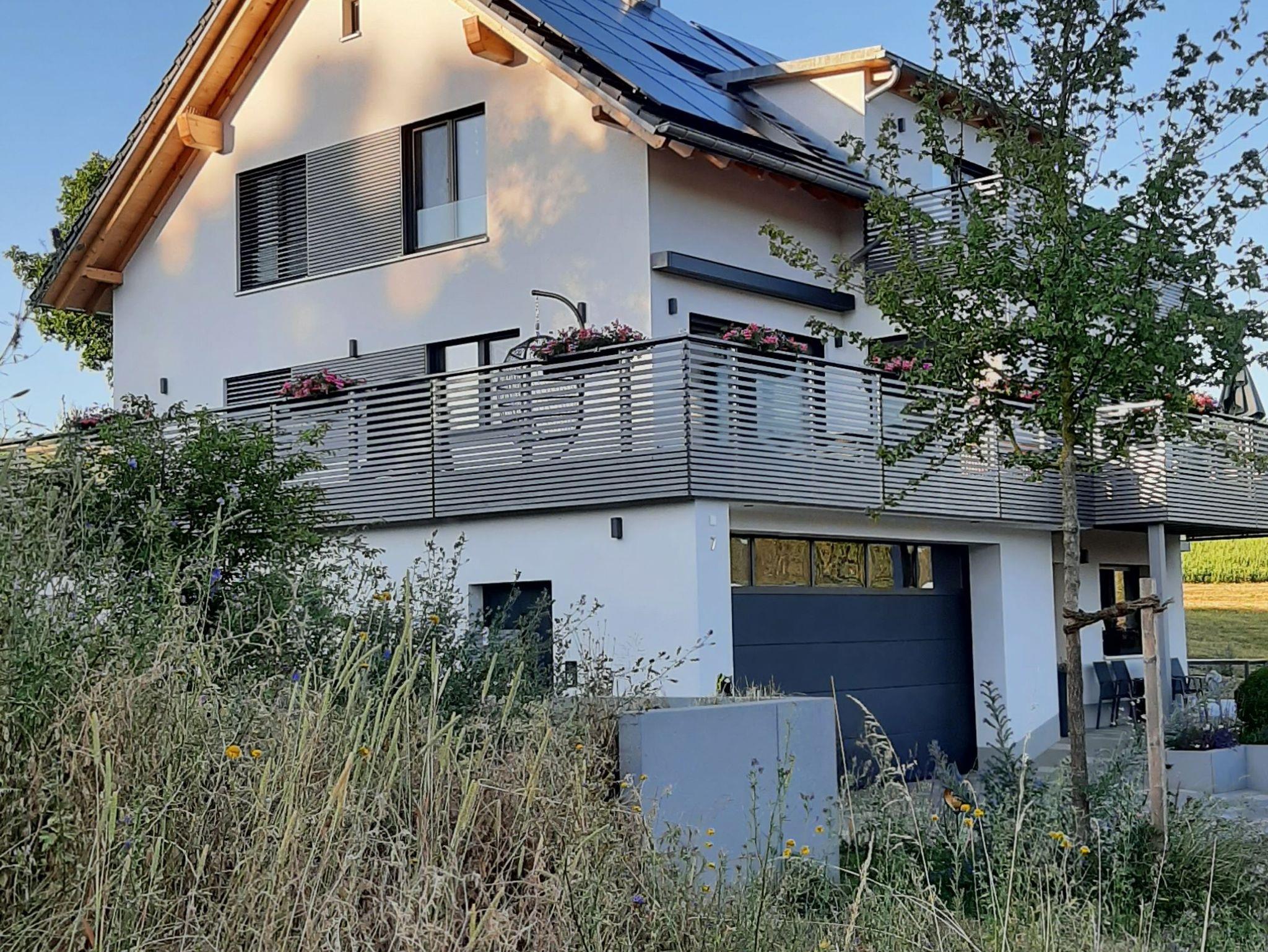 Vom nach Süd-Osten ausgerichteten Wohnzimmer geht es hinaus zur großzügigen Sonnentrasse