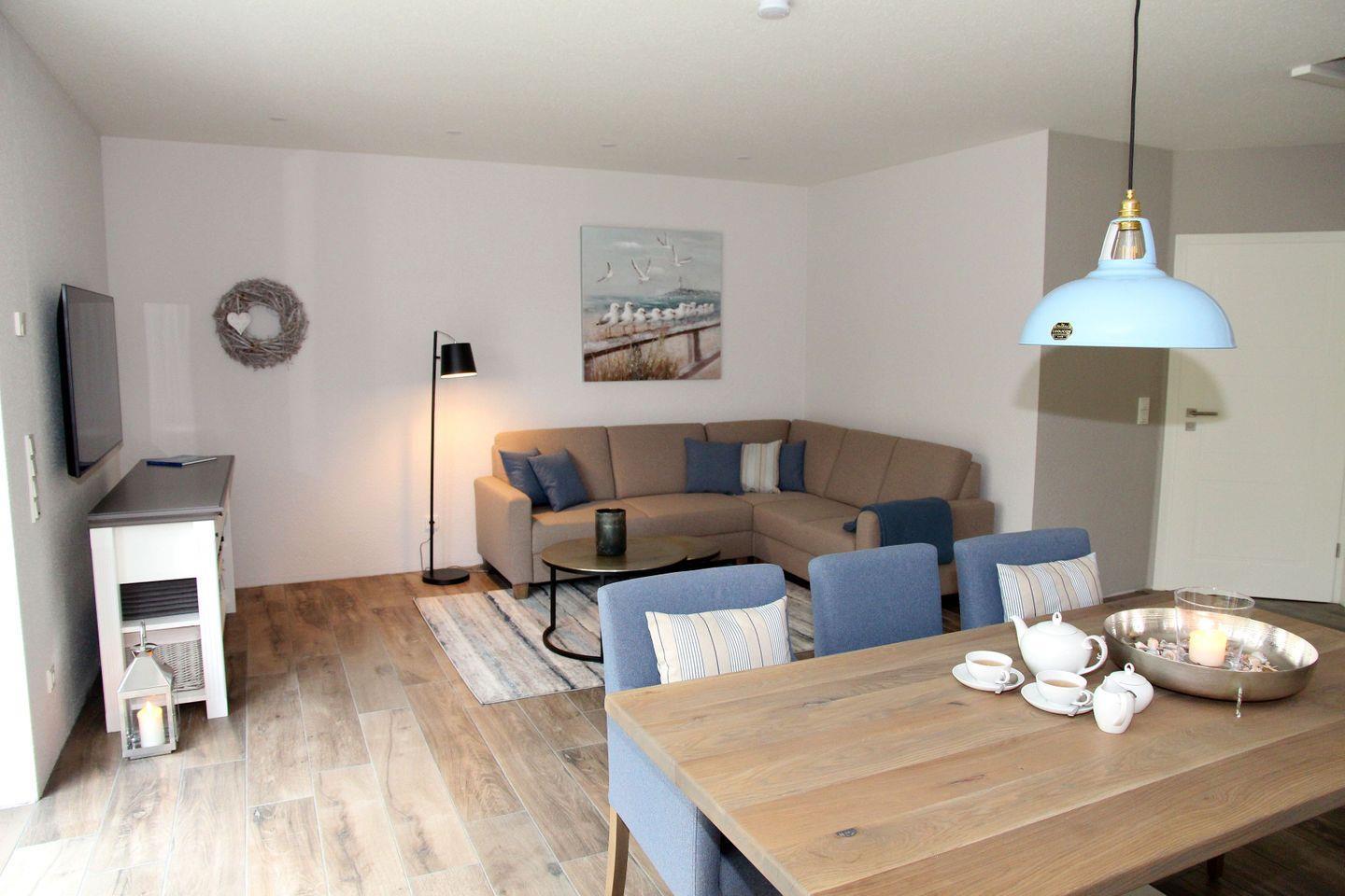 Die Inneneinrichtung wurde liebevoll in Zusammenarbeit mit einer Interiordesignerin konzipiert und vermittelt friesische Gemütlichkeit im modernen Landhaus-Look mit maritimen Anklängen.