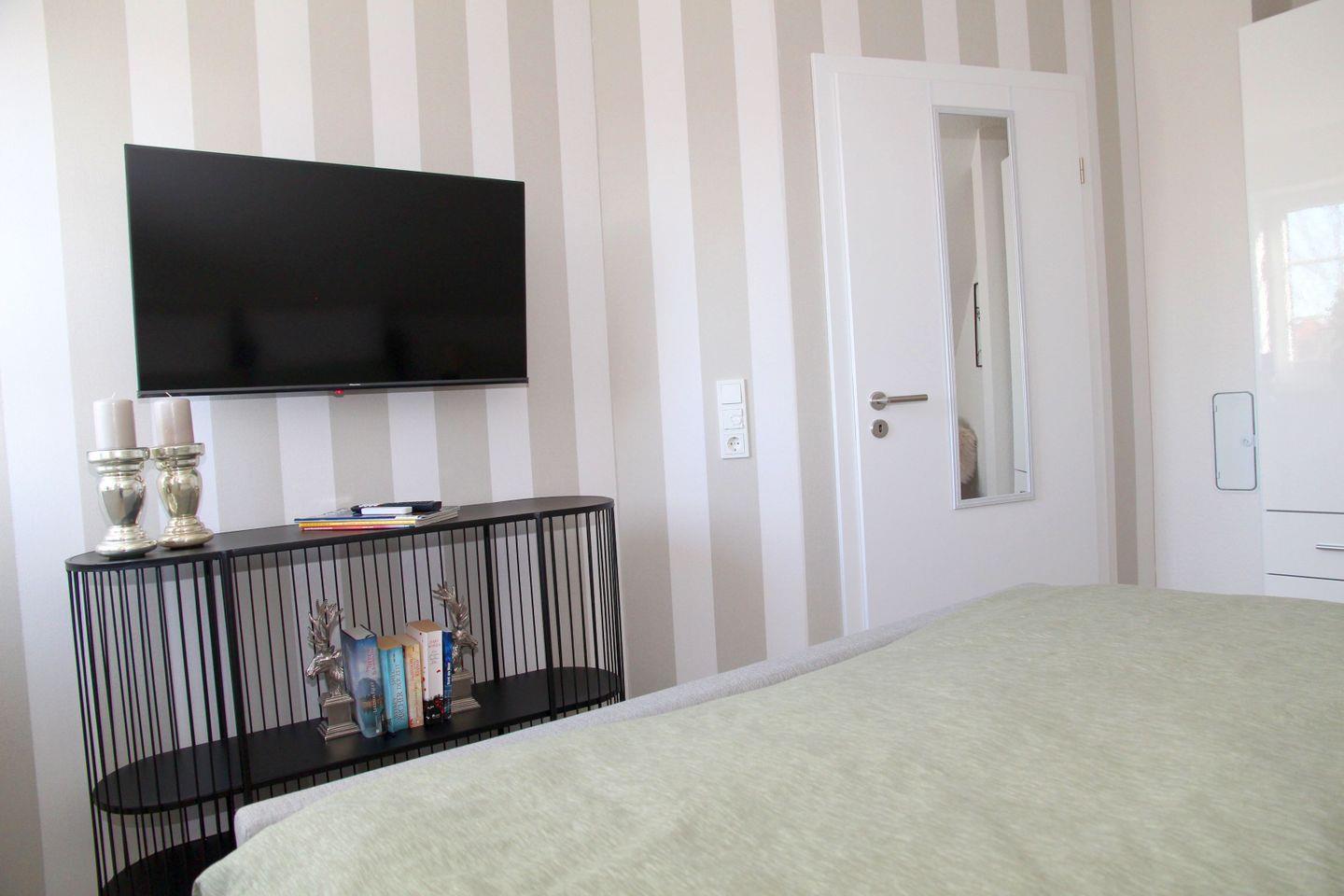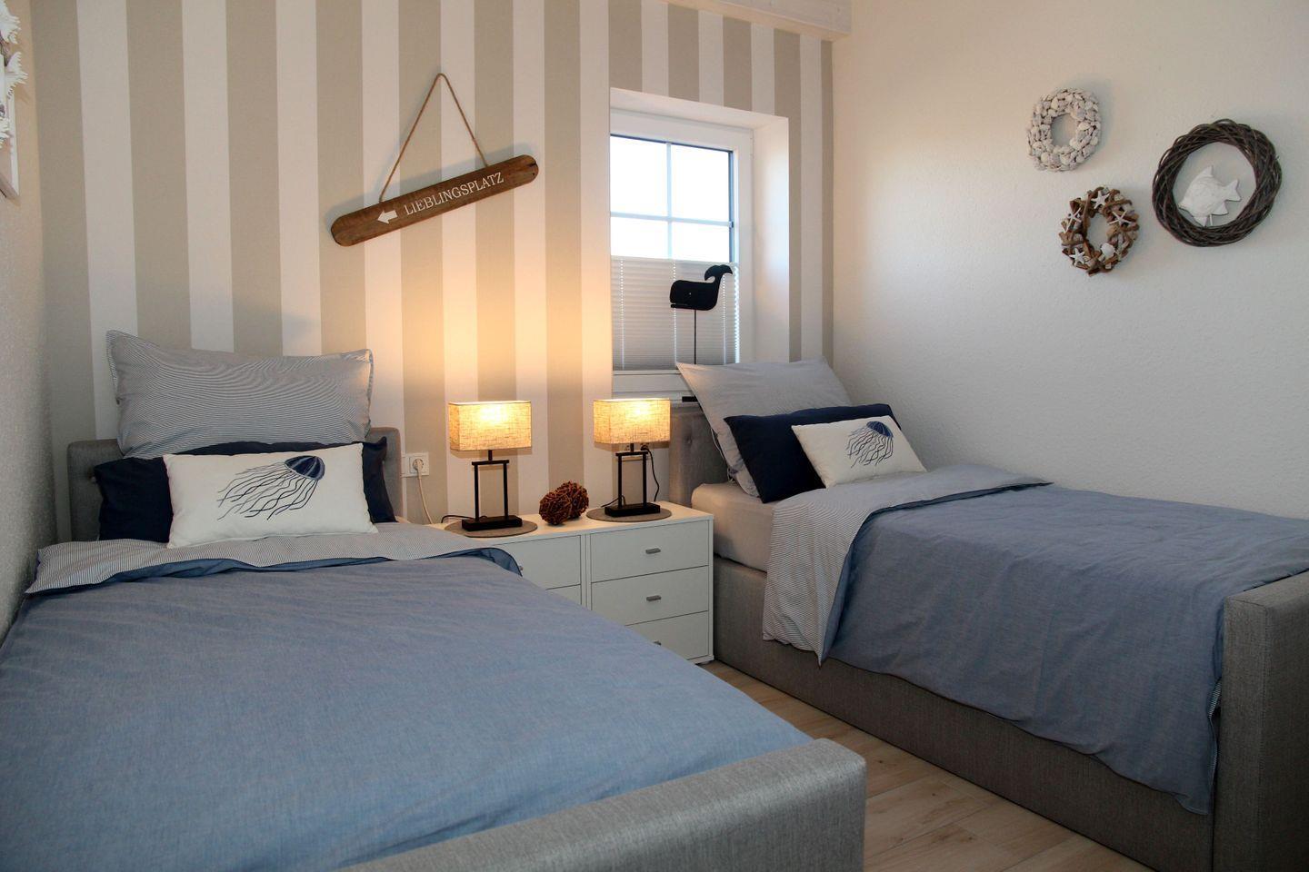 Das Haus bietet Ihnen insgesamt drei Schlafzimmer, die mit flauschigen Betten und viel Stauraum ausgestattet sind. Sie sind der perfekte Rückzugsort für eine erholsame Nachtruhe. Eines der Schlafzimmer befindet sich mit zwei einzelnen Boxspringbetten, Kleiderschrank und TV im Erdgeschoss, die beiden weiteren Schlafzimmer befinden sich mit jeweils einem Doppelboxspringbett (1x 1,80 m, 1x 1,60 m), Kleiderschrank (einmal sogar begehbar) und TV im Obergeschoss. Zudem stehen Ihnen zwei moderne Badezimmer zur Verfügung, die mit großen bodengleichen Duschen, Handtuchheizkörper, Föhn, WC und Waschbecken ausgestattet sind. Das große Badezimmer im Erdgeschoss bietet darüber hinaus noch die Sauna, eine Waschmaschine und einen Trockner.