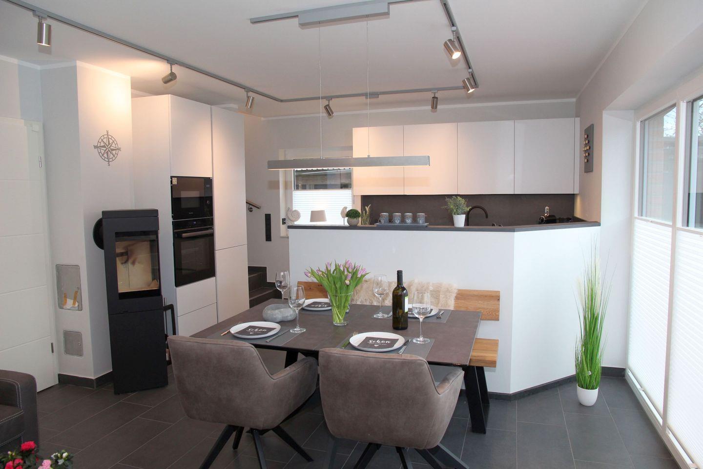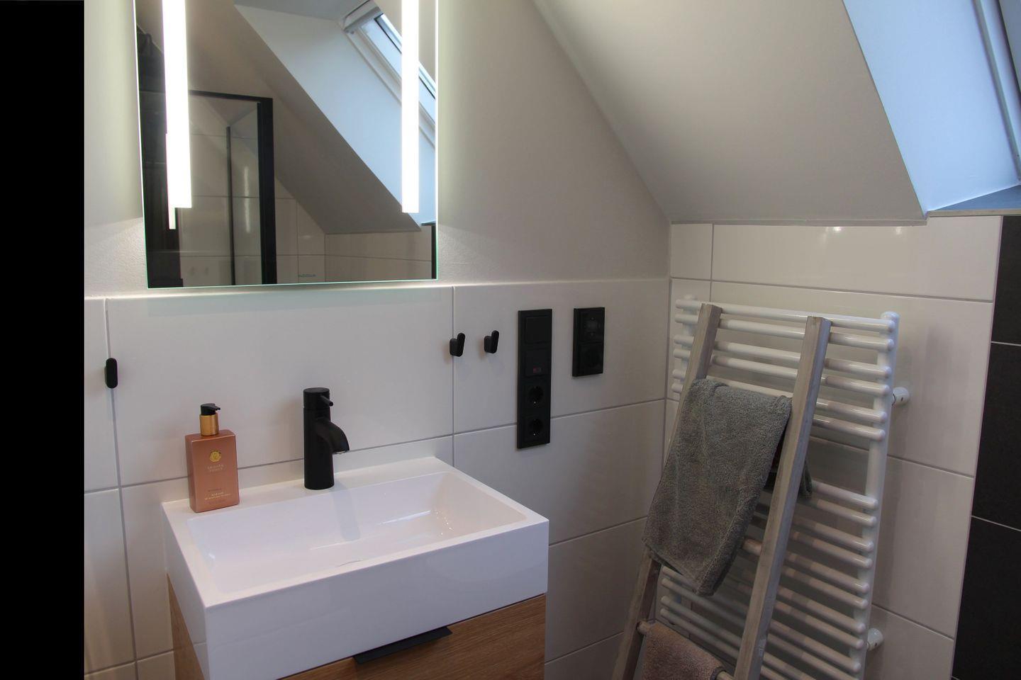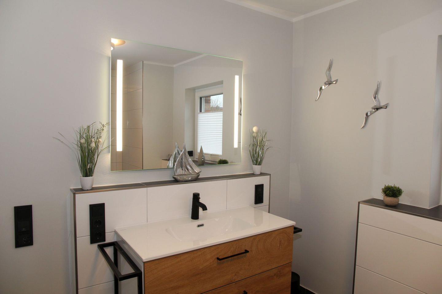 Im Erdgeschoss erwartet Sie eine super ausgestattete moderne Küche (u.a. Induktionskochfeld, Backofen, Mikrowelle, Spülmaschine, Nespresso-Kapselmaschine, Kaffeemaschine, Wasserkocher, Toaster, Eierkocher, Pürierstab, Mixer) mit angrenzendem Ess- und Wohnbereich mit Kamin und TV. Ebenfalls befindet sich im Erdgeschoss ein großzügiges Bad mit ebenerdiger Dusche, Handtuchheizkörper, Radio und Fön. Ein Abstellraum mit Waschtrockner und diversen Haushaltshelfern (Wäscheständer, Bügeleisen, Bügelbrett etc.) vollendet das Erdgeschoss.