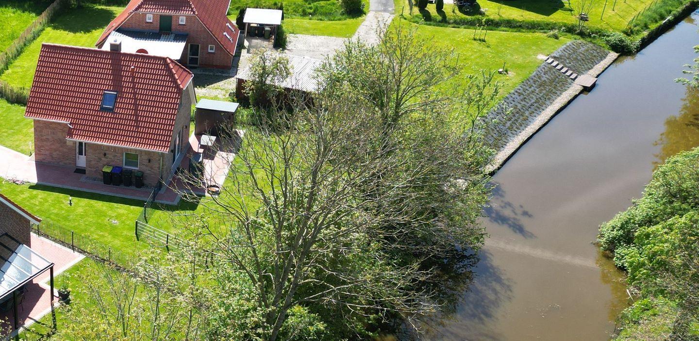 Genießen Sie die absolute Ruhe mit Ihren Hunden auf dem eingezäunten Wassergrundstück in Eilsum bei Greetsiel (bis Greetsiel ca. 4 km).