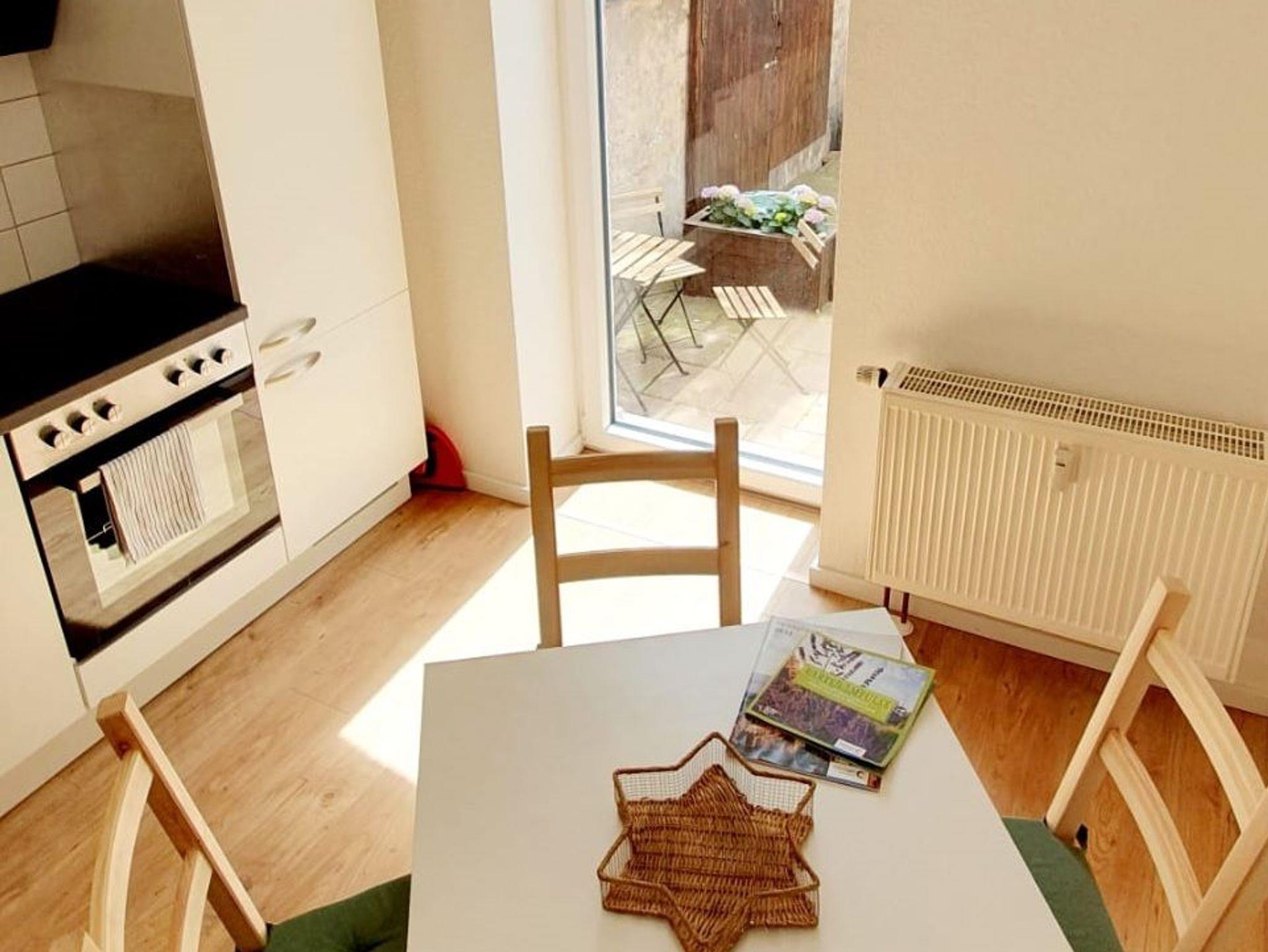 Unsere komfortablen und mit viel Liebe zum Detail ausgestatteten Nichtraucher-Ferienwohnung befinden sich im Erdgeschoss eines Altbaus . Die Ferienwohnung bietet auf ca. 48 m² Wohnfläche einen hellen und modern eingerichteten Wohn- und Schlafraum, eine modernen Einbauküche mit Sitzbereich sowie ein Badezimmer.