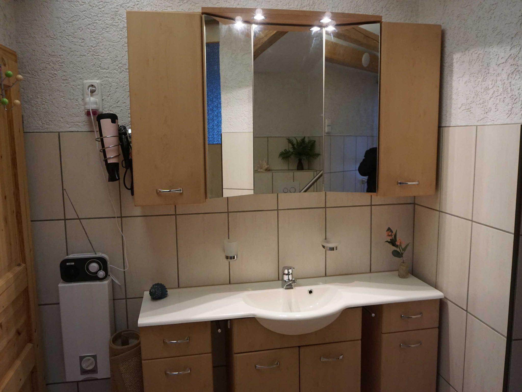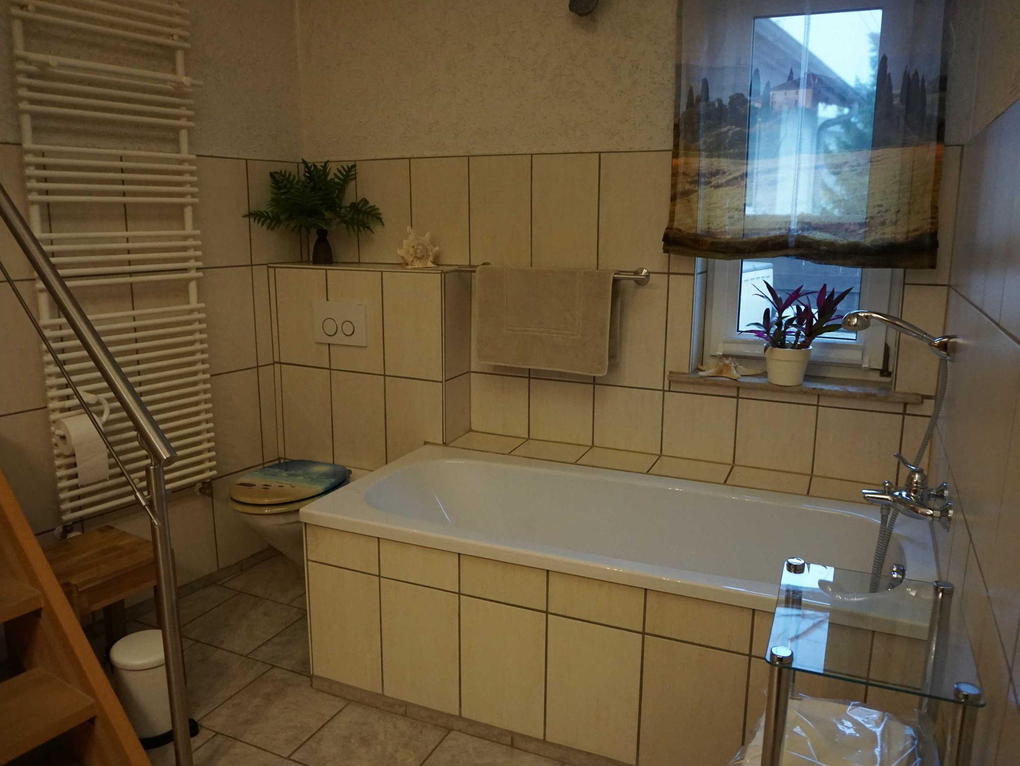 Die Ferienwohnung ist großzügig auf 2 Etagen verteilt. Sie verfügt im EG über ein Schlafzimmer, ein Badezimmer, eine Küche sowie einen Aufenthaltsraum mit Schlafcouch. Über eine steile Treppe gelagen Sie ins Obergeschoss. Dort befindet sich das Wohnzimmer mit Wintergarten , Zugang zur Terrasse sowie ein weiteres Schlafzimmer und ein Badezimmer.