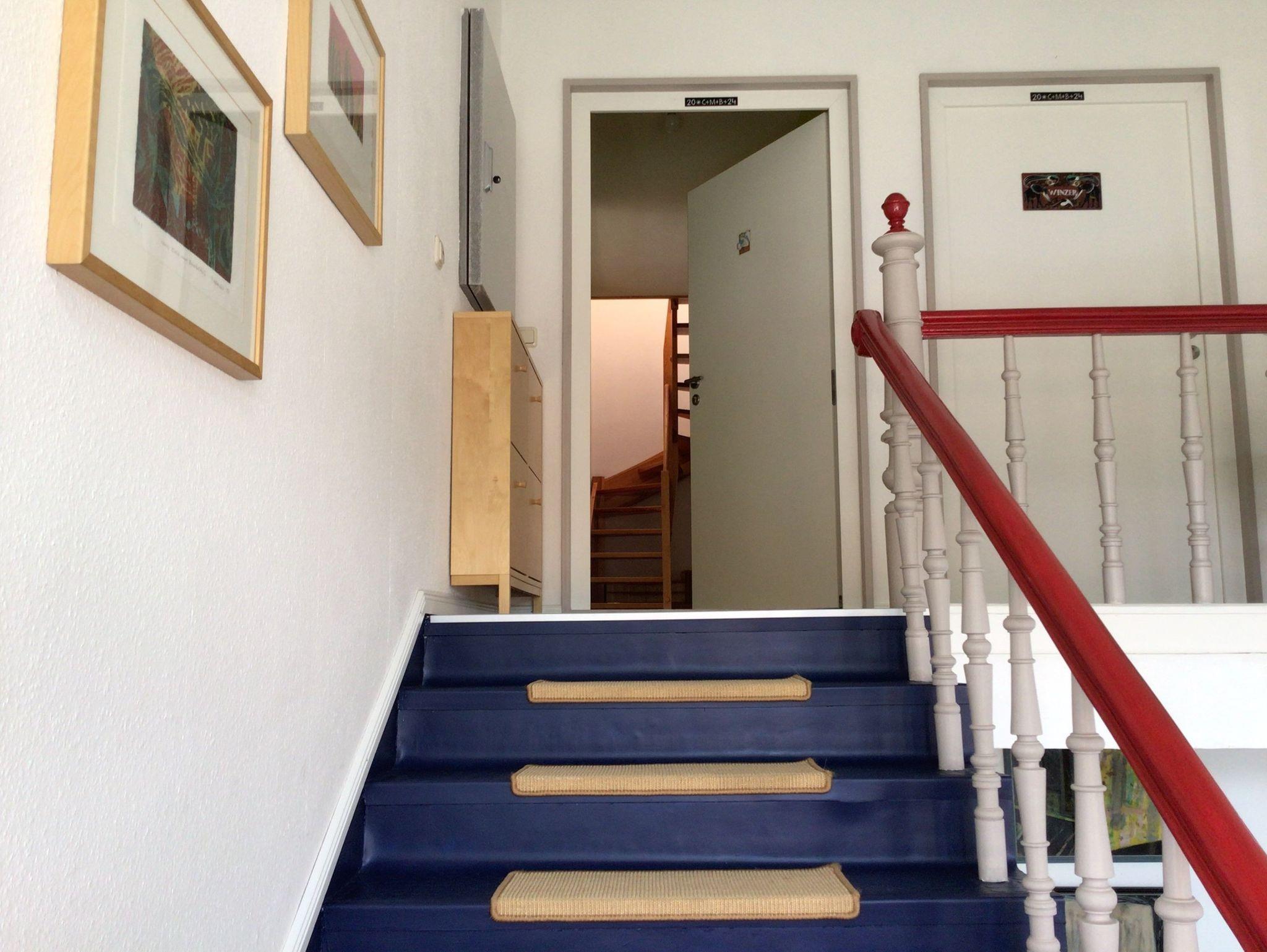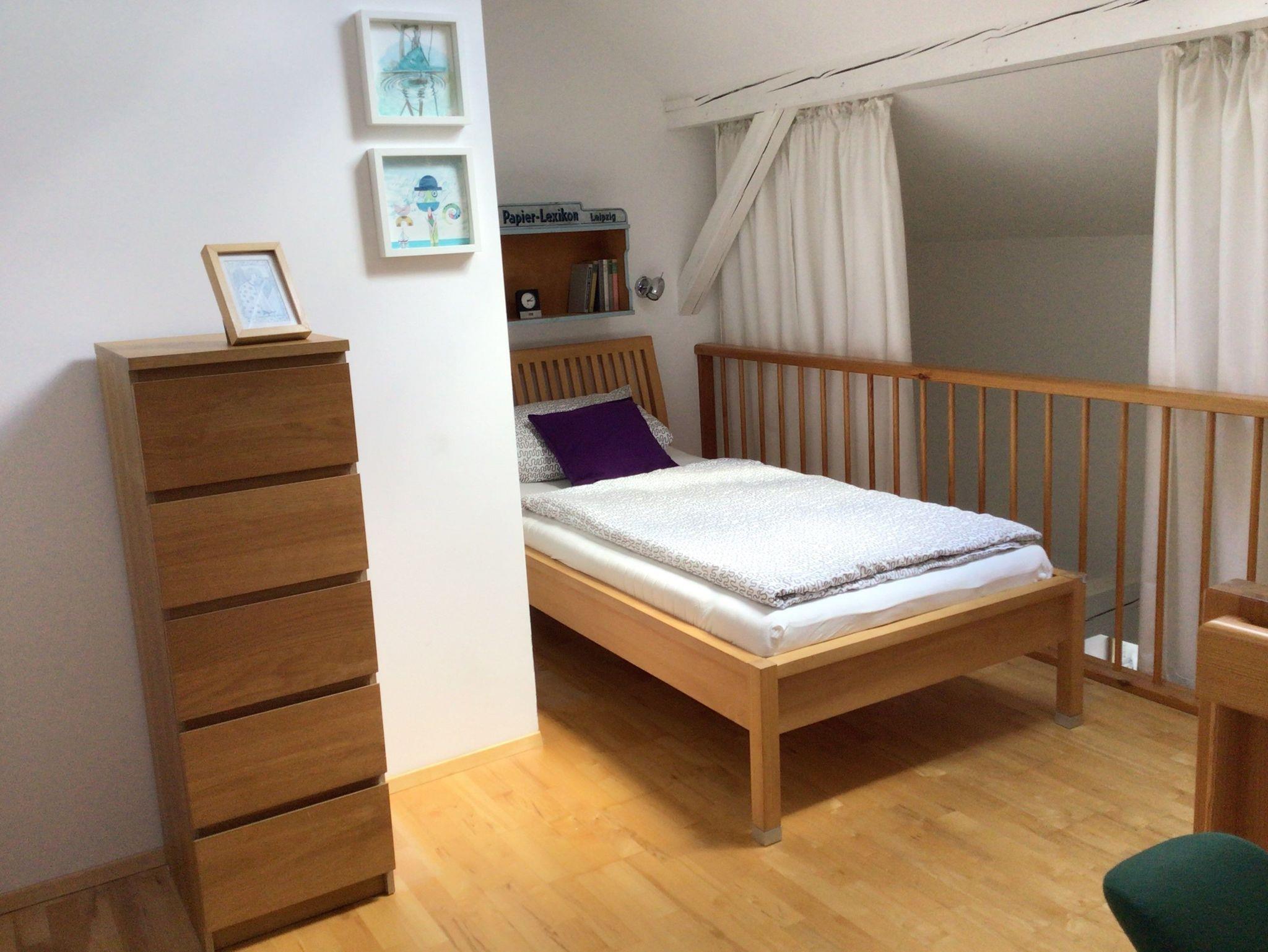 Unser Haus wurde 2009 liebevoll saniert und hat im Obergeschoss für 4 Personen eine im Designerstil geschmackvoll eingerichtete Nichtraucher-Maisonettewohnung mit Balkon. Die Wohnung ist 90m² groß, hat eine komfortabel eingerichtete Küche, ein geräumiges Badezimmer mit separater Dusche und ein großzügiges, sonniges Wohnzimmer mit einem bequemen Schlafsofa (1,60 m breit ). Vom Wohnzimmer kommt man in das 20m² große Schlafzimmer mit einem kleinen Doppelbett (1,40 m breit). Auf der Galerieetage befindet sich ein Einzelbett und ein kleiner Schreibtisch.