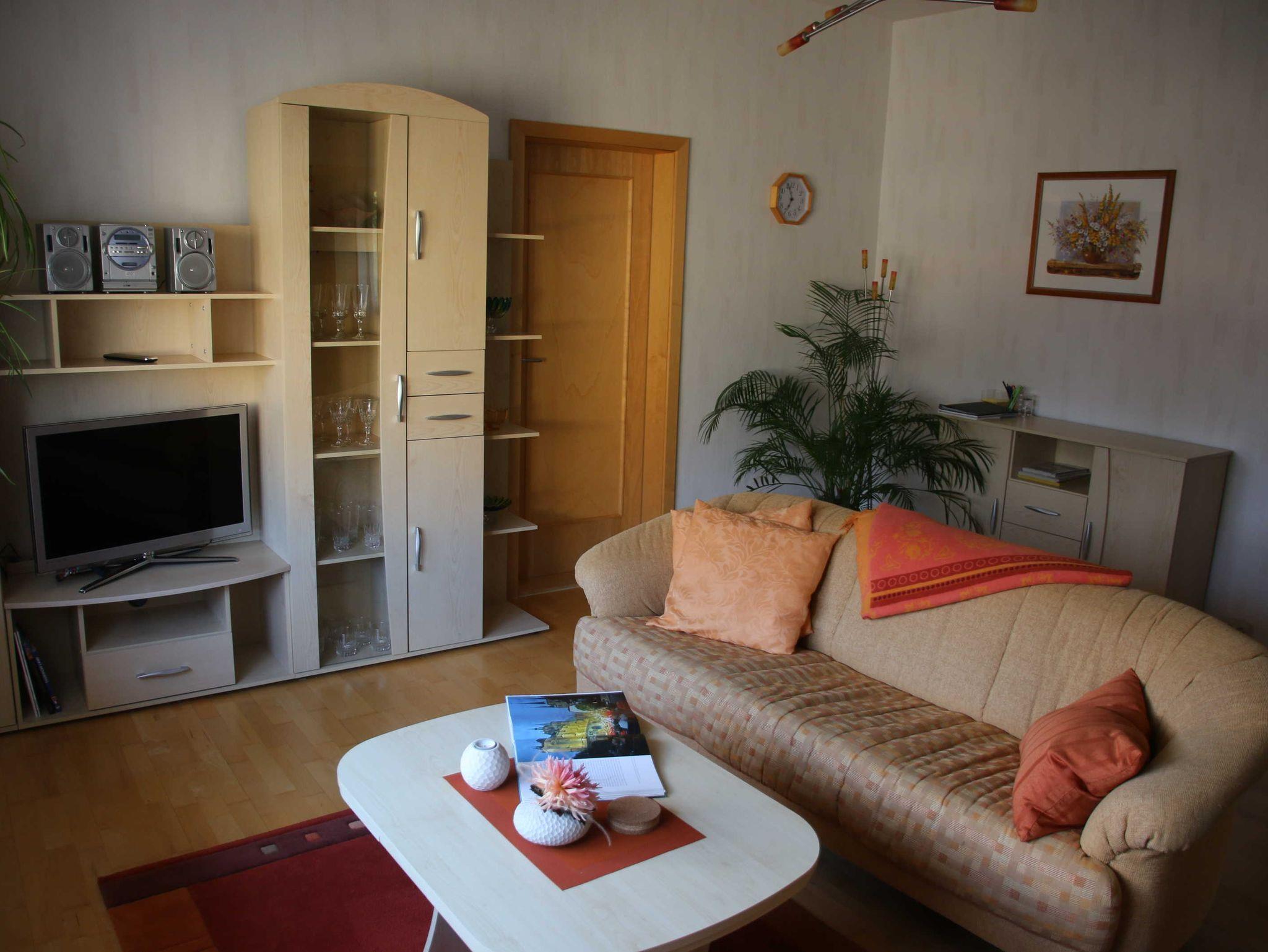 Lieber Gast, Sie erwartet eine gemütliche 74 m² große Ferienwohnung im 2. OG unseres Hauses. Die familienfreundliche, geschmackvolle Nichtraucherwohnung in ruhiger Lage verfügt über 2 Schlafräume, 1 Wohnzimmer, 1 Tageslichtbad mit Badewanne und Dusche sowie eine komplette Wohnküche. Eine Sitz- und Grillmöglichkeit im Garten laden zum Verweilen ein. Die Eis-, Leichtathletik- und Schwimmhalle, das Steigerwaldstadion, der Landtag, die IHK und die Thüringenhalle erreichen Sie gut zu Fuß. Mit Stadtbus/ Straßenbahn sind Sie schnell in der Altstadt und am Bahnhof (zu Fuß ca. 20 Min). WLAN auf Anfrage.