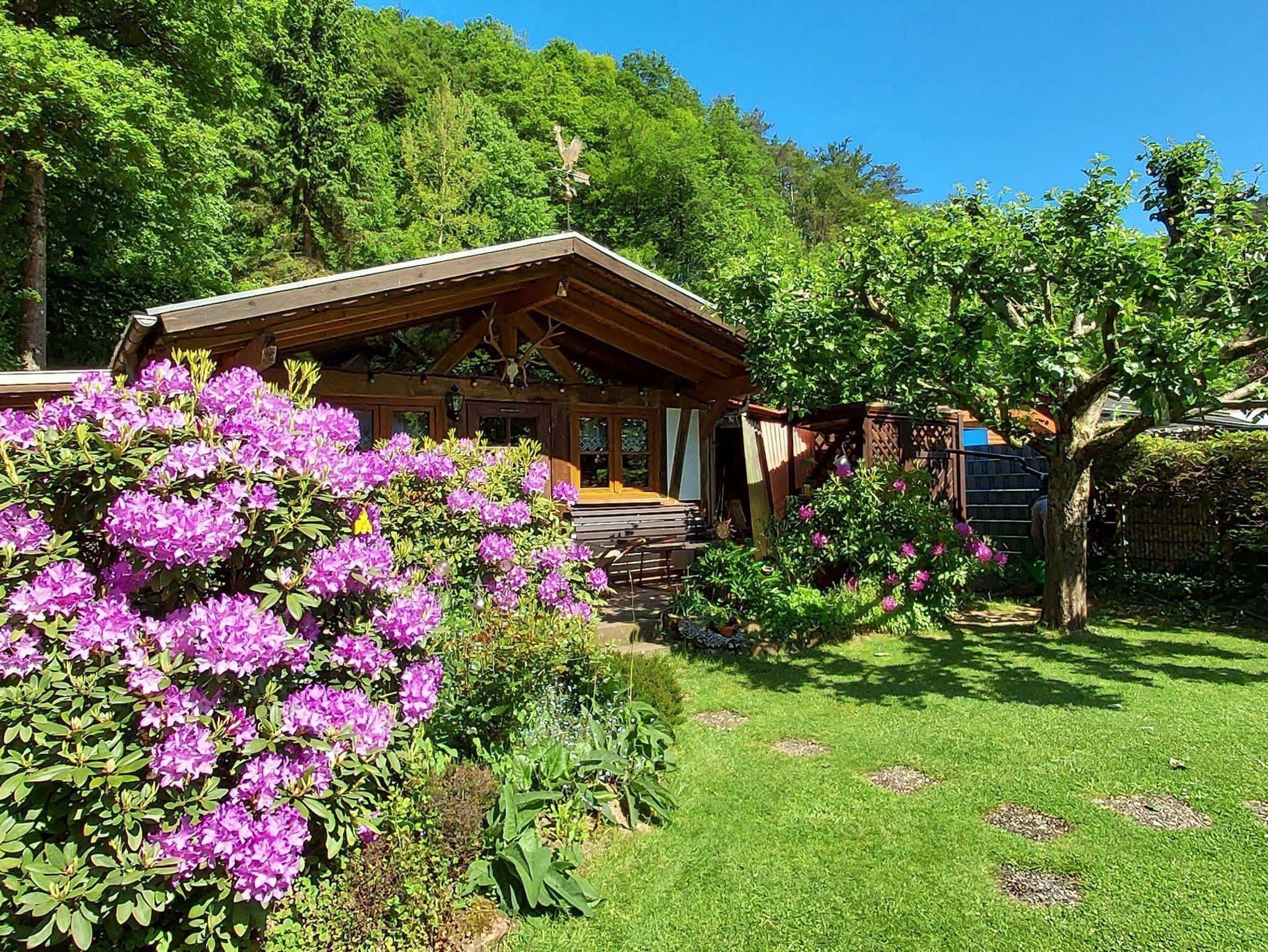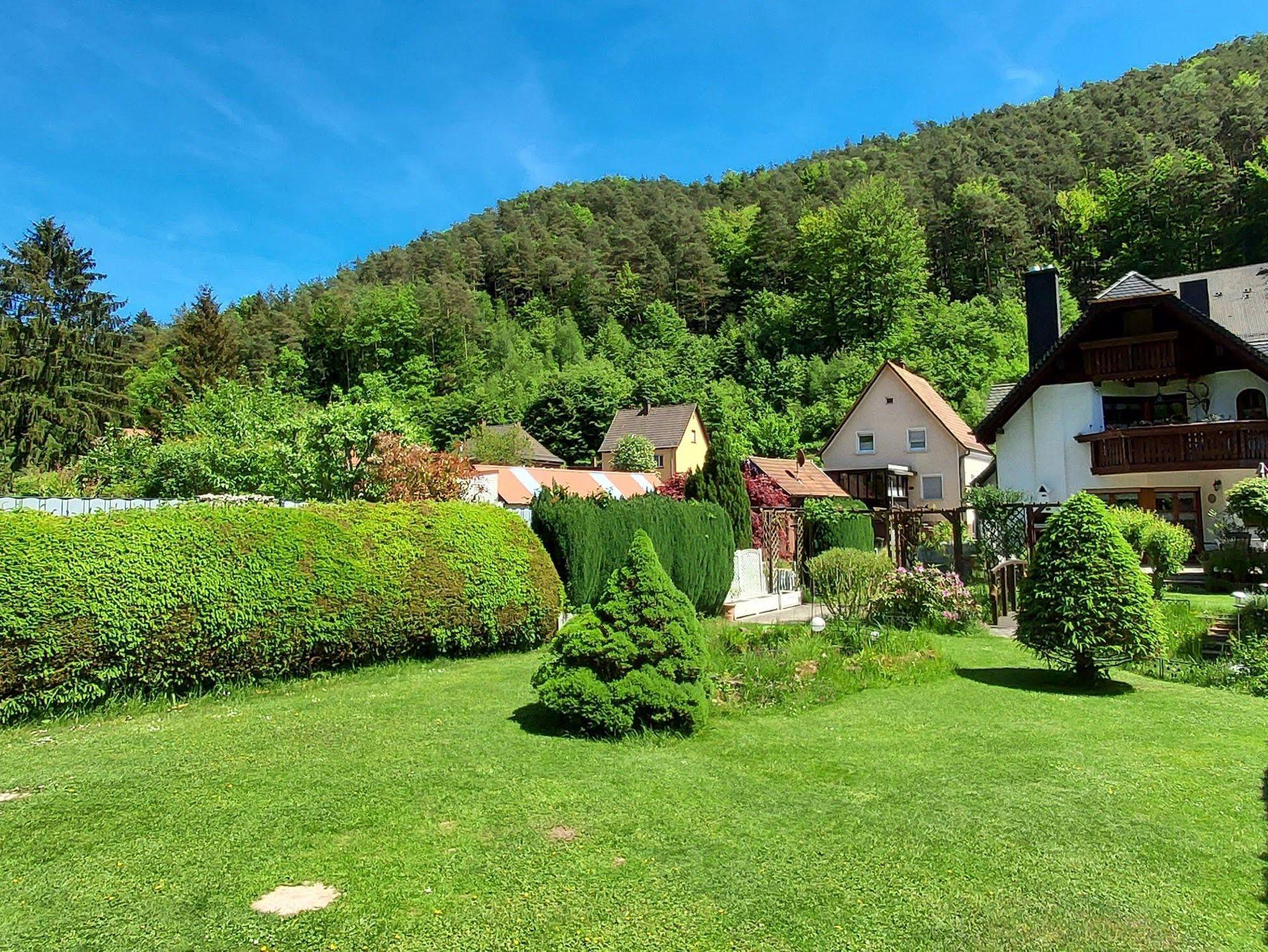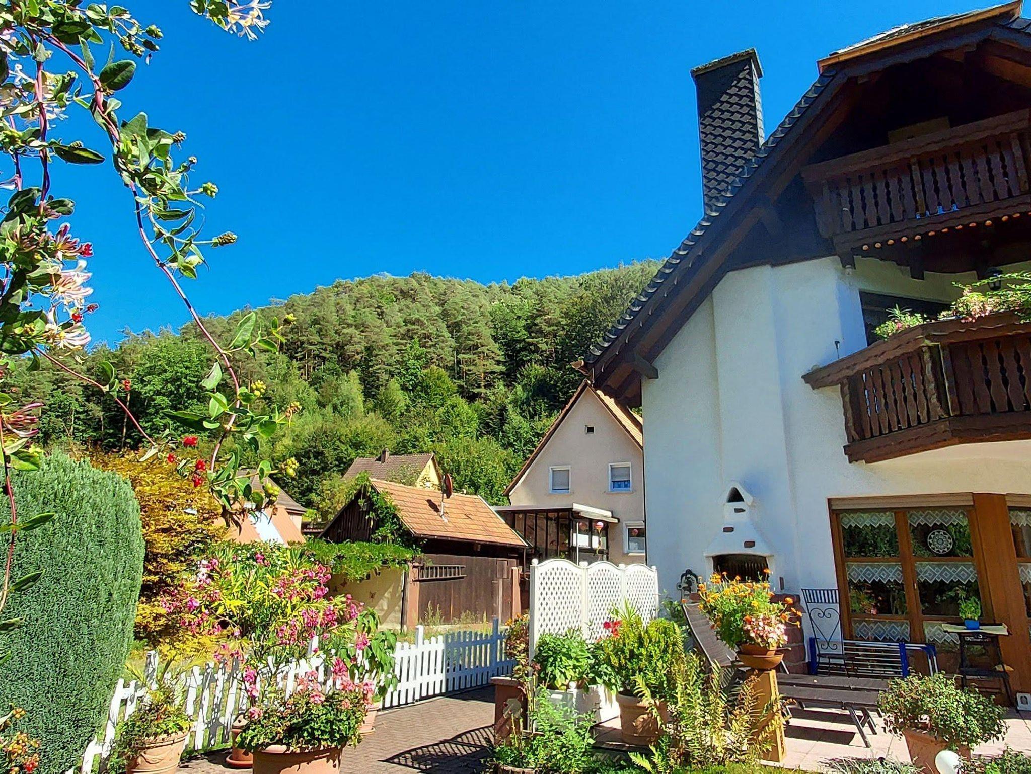 Schöne Ferienwohnung im Landhausstil mit gehobener Ausstattung und Blumengarten in romantischer Atmosphäre am Waldrand und am idyllischen Eibach gelegen.