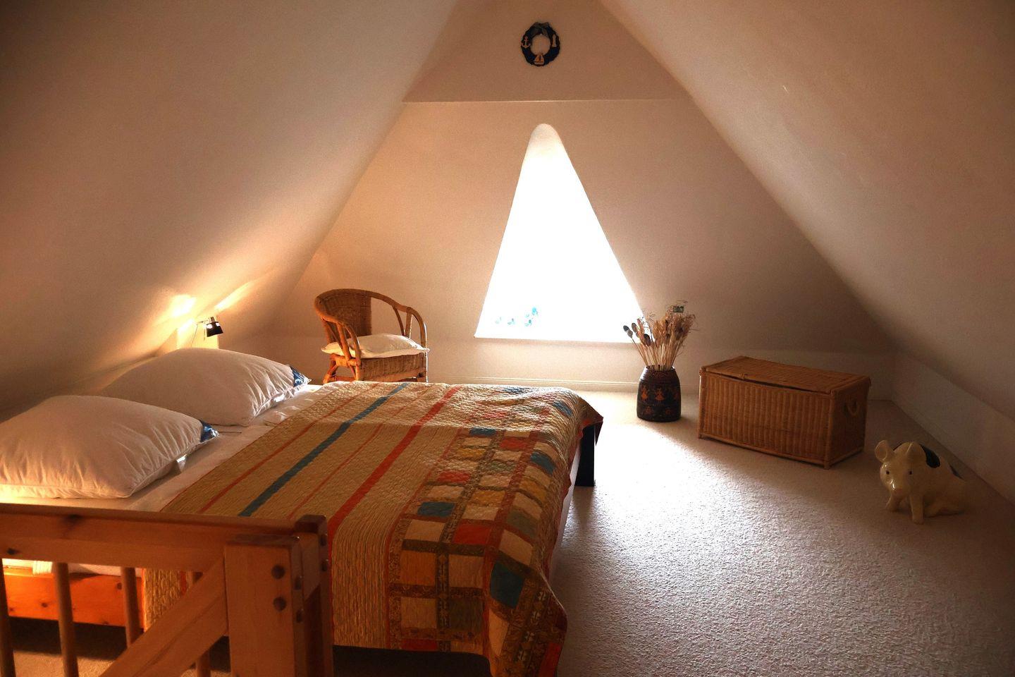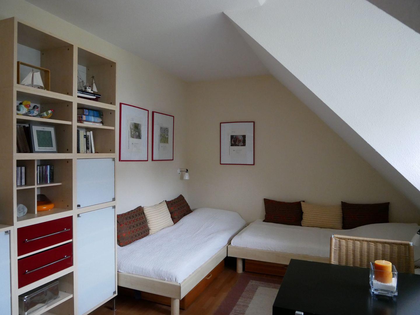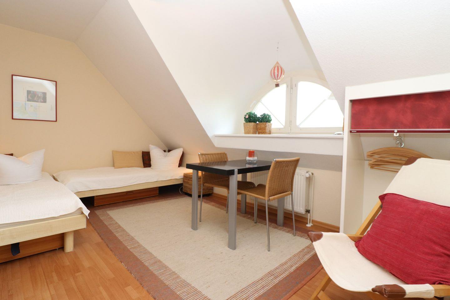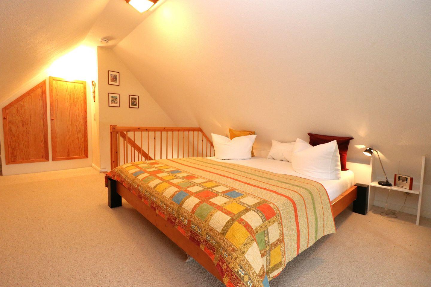 Ein gemütliches Maisonette-Appartement im Obergeschoss, nahe Badestelle perfekt für maximal 4 Personen. Genießen Sie zwei Balkone an der West- und Südseite mit Blick auf den Bodden, ideal für entspannte Stunden im Freien und wunderschöne Sonnenuntergänge. Im Obergeschoss befindet sich das Wohnzimmer mit einer praktischen Küchenzeile, damit Sie sich selbst versorgen können, sowie ein Bad mit Fußbodenheizung, einer Waschmaschine und Dusche/WC sowie ein Wohn-/ Schlafzimmer mit zwei Einzelbetten. Das zweite Schlafzimmer befindet sich im Dachgeschoss und verfügt über ein komfortables Doppelbett für erholsamen Schlaf. In der Wohnung steht Ihnen WLAN für einen bequemen Internetzugang während des Aufenthalts zur Verfügung. Der PKW-Stellplatz sowie ein abschließbarer Fahrradschuppen, in dem Ihnen 2 Fahrräder zur kostenlosen Nutzung zur Verfügung stehen, befinden sich direkt am Grundstück. Vierbeinige Gäste sind bei viel Auslauf in Boddennähe willkommen.