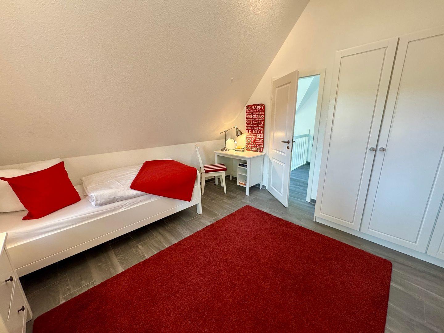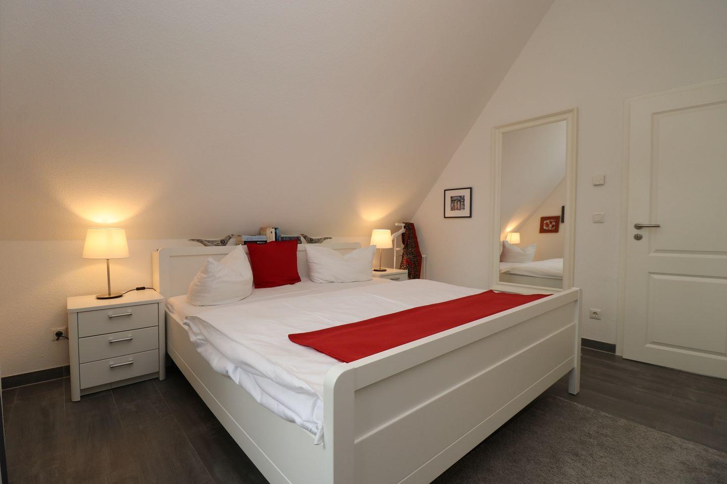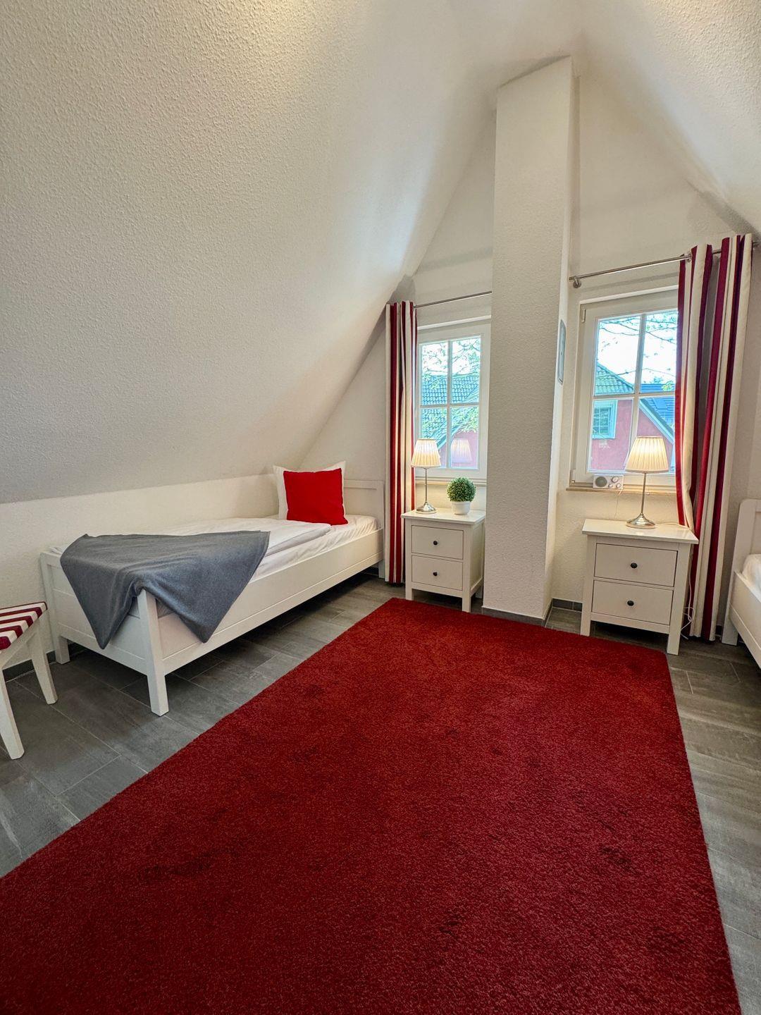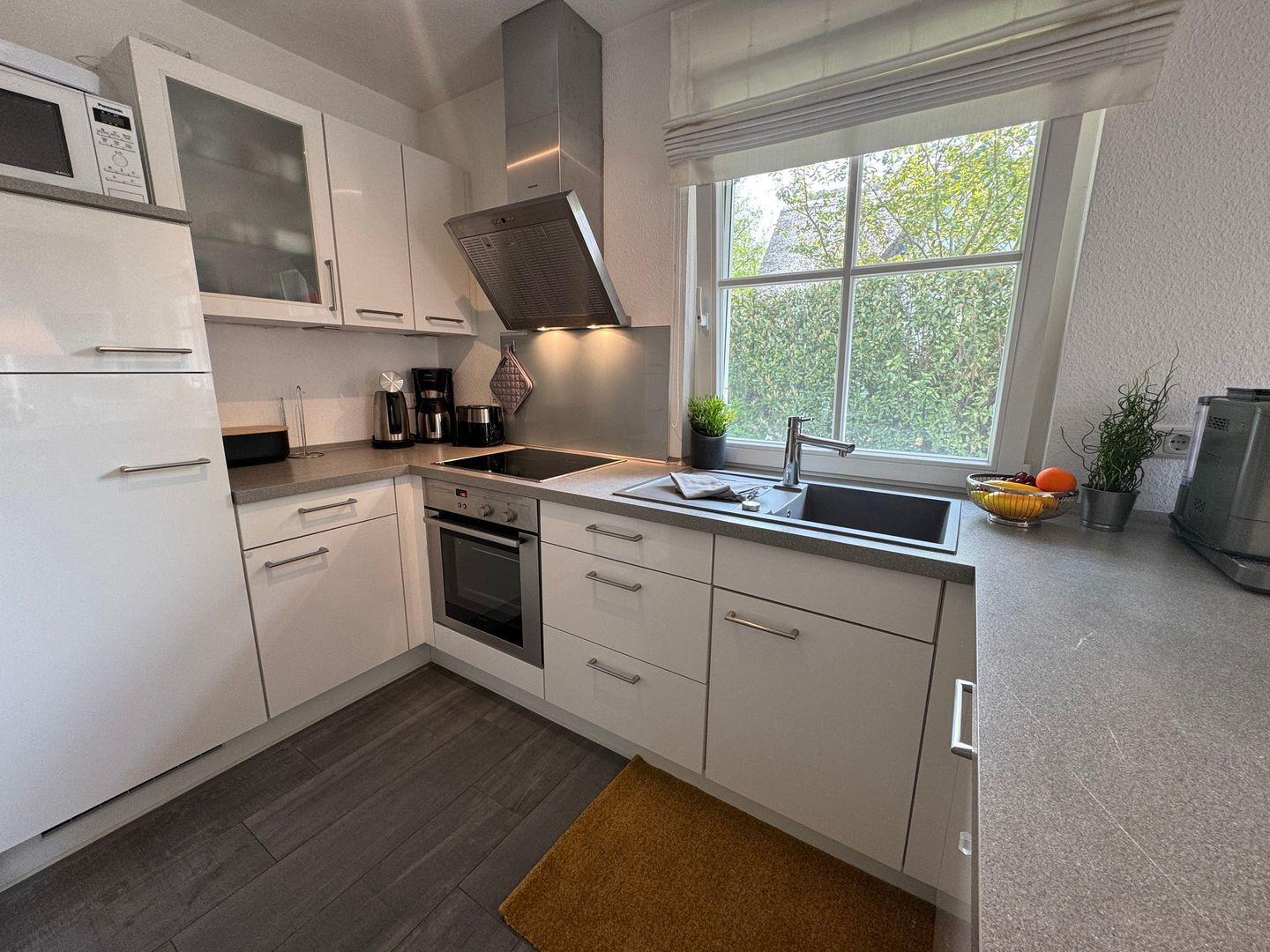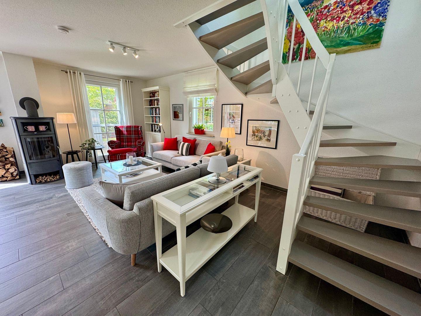 Das Haus verfügt über zwei geschmackvoll eingerichtete Schlafzimmer, in denen Sie erholsame Nächte verbringen können. Jedes Zimmer ist mit hochwertigen Bettwaren und modernem Mobiliar ausgestattet, um Ihnen den bestmöglichen Komfort zu bieten. Das großzügige Wohnzimmer mit einer einladenden Sofaecke und einem Kaminofen lädt dazu ein, nach einem erlebnisreichen Tag gemütliche Stunden miteinander zu verbringen. Genießen Sie entspannte Abende bei einem Glas Wein, während die Wärme des Kamins für eine behagliche Atmosphäre sorgt.