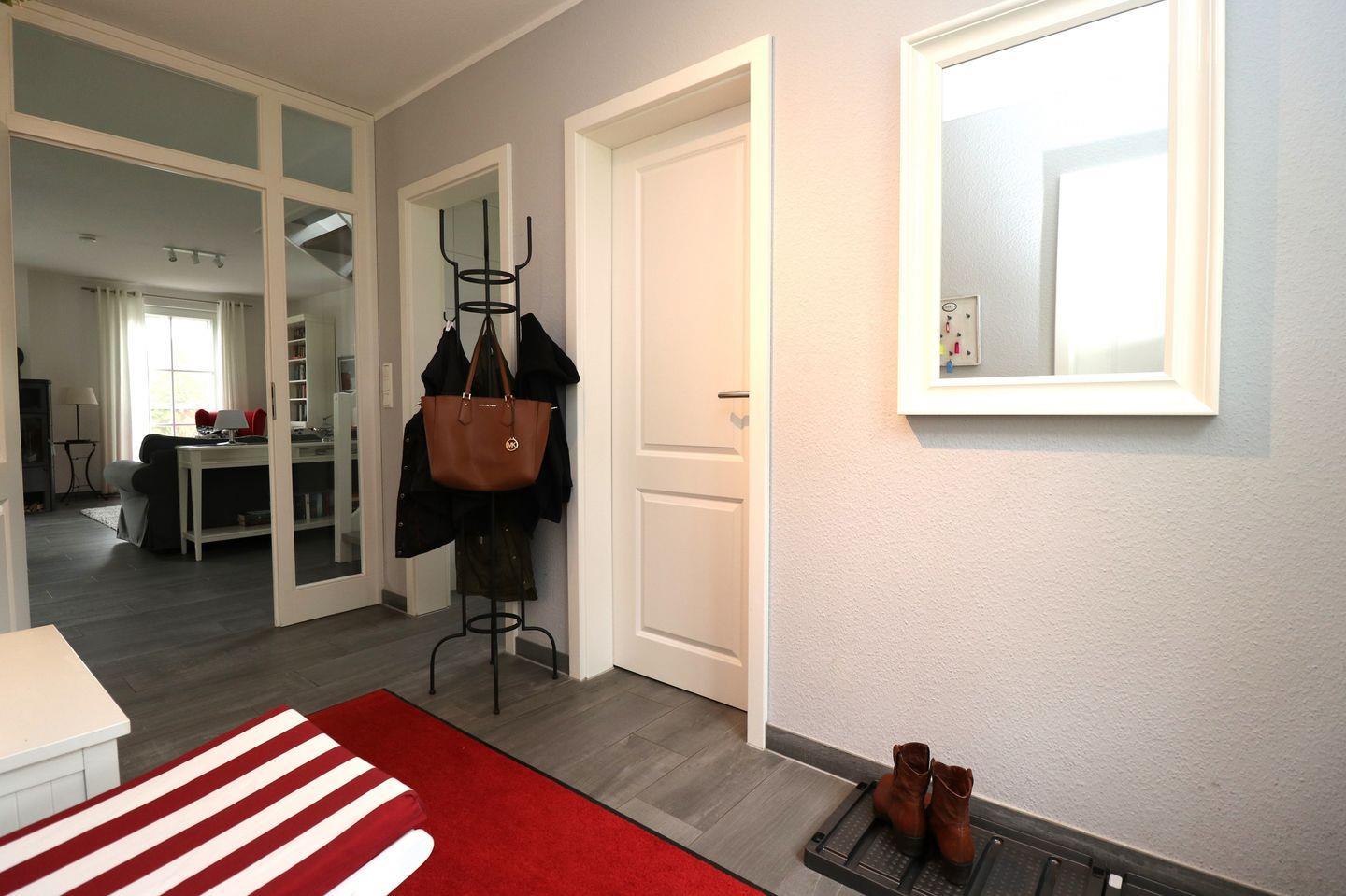 Eines der Highlights ist die große Terrasse, die Ihnen einen Blick auf den liebevoll angelegten Garten bietet. Hier können Sie die frische Luft genießen, während sich Ihre Kinder auf der Liegewiese austoben oder im Garten spielen. Gartenmöbel stehen für entspannte Stunden im Freien bereit – genießen Sie die Sonne oder machen Sie es sich mit einem Buch gemütlich.