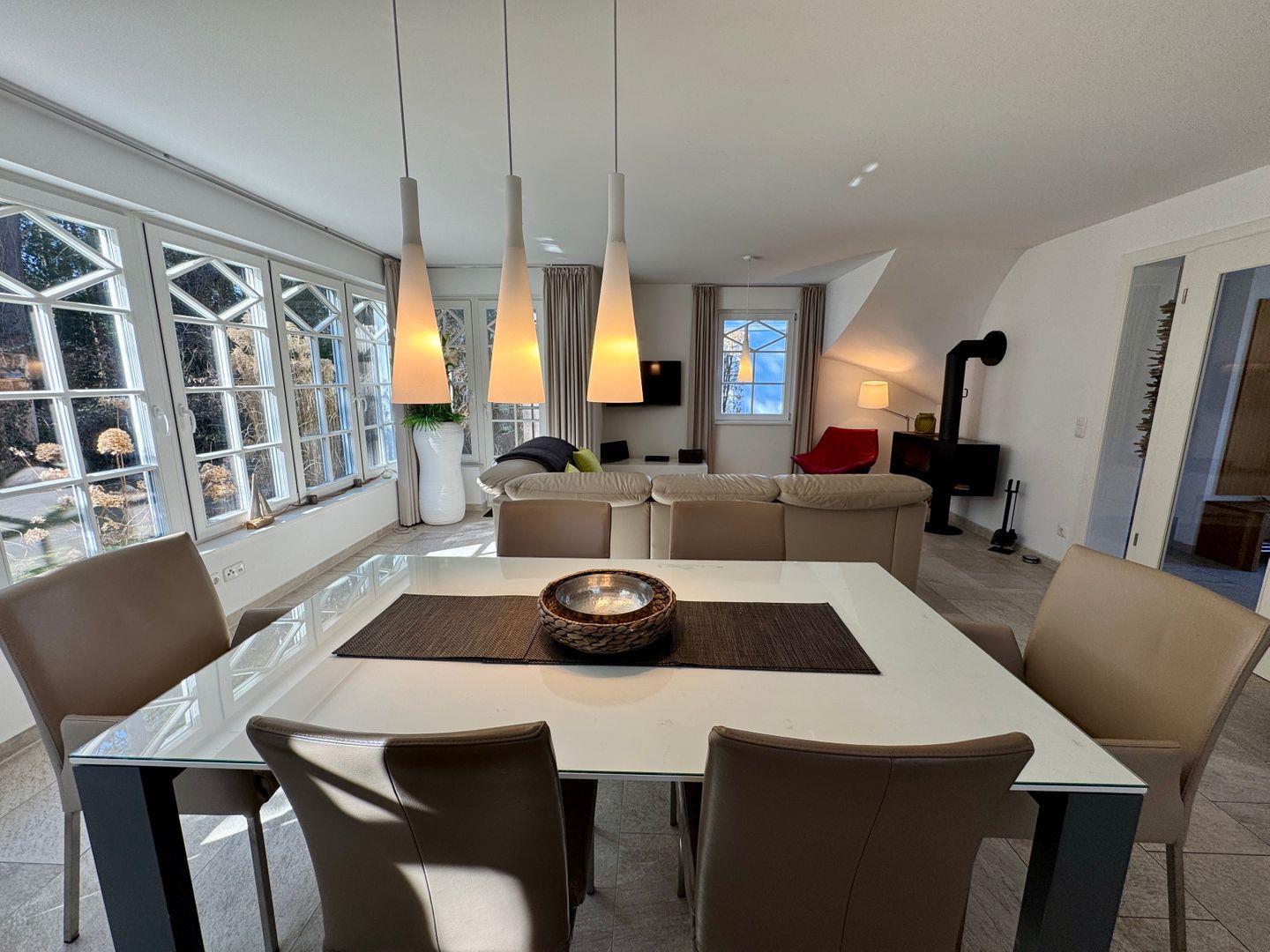 Ein geräumiges Ferienhaus mit Terrasse nach Süd/Westen, einem Garten mit Holzkohlegrill und einem Balkon mit Blick auf den Wald, ideal für maximal 6 Personen. Im Erdgeschoss erwartet Sie ein gemütliches Wohnzimmer mit Kamin, einer voll ausgestatteten Küchenzeile und einem Essbereich für gesellige Mahlzeiten. Ein Badezimmer mit Dusche/WC, Waschmaschine und Sauna sorgen für zusätzlichen Komfort. Im Obergeschoss befinden sich zwei Schlafzimmer mit Doppelbetten sowie ein weiteres Schlafzimmer mit einem ausziehbaren Bett (1,60 x 2,00 m). Ein weiteres Badezimmer mit Dusche und WC steht ebenfalls zur Verfügung. Im Dachgeschoss finden Sie ein Sofa und ein Klavier für entspannte Momente. Maximal ein Haustier ist gestattet und Rauchen im Haus ist nicht erlaubt. WLAN und Fußbodenheizung sind vorhanden, um Ihnen einen angenehmen Aufenthalt zu bieten. Auf dem Grundstück stehen Ihnen zwei Parkplätze zur Verfügung, und eine E-Ladestation kann auf Anfrage genutzt werden. Ein abschließbarer Fahrradschuppen ist ebenfalls vorhanden.