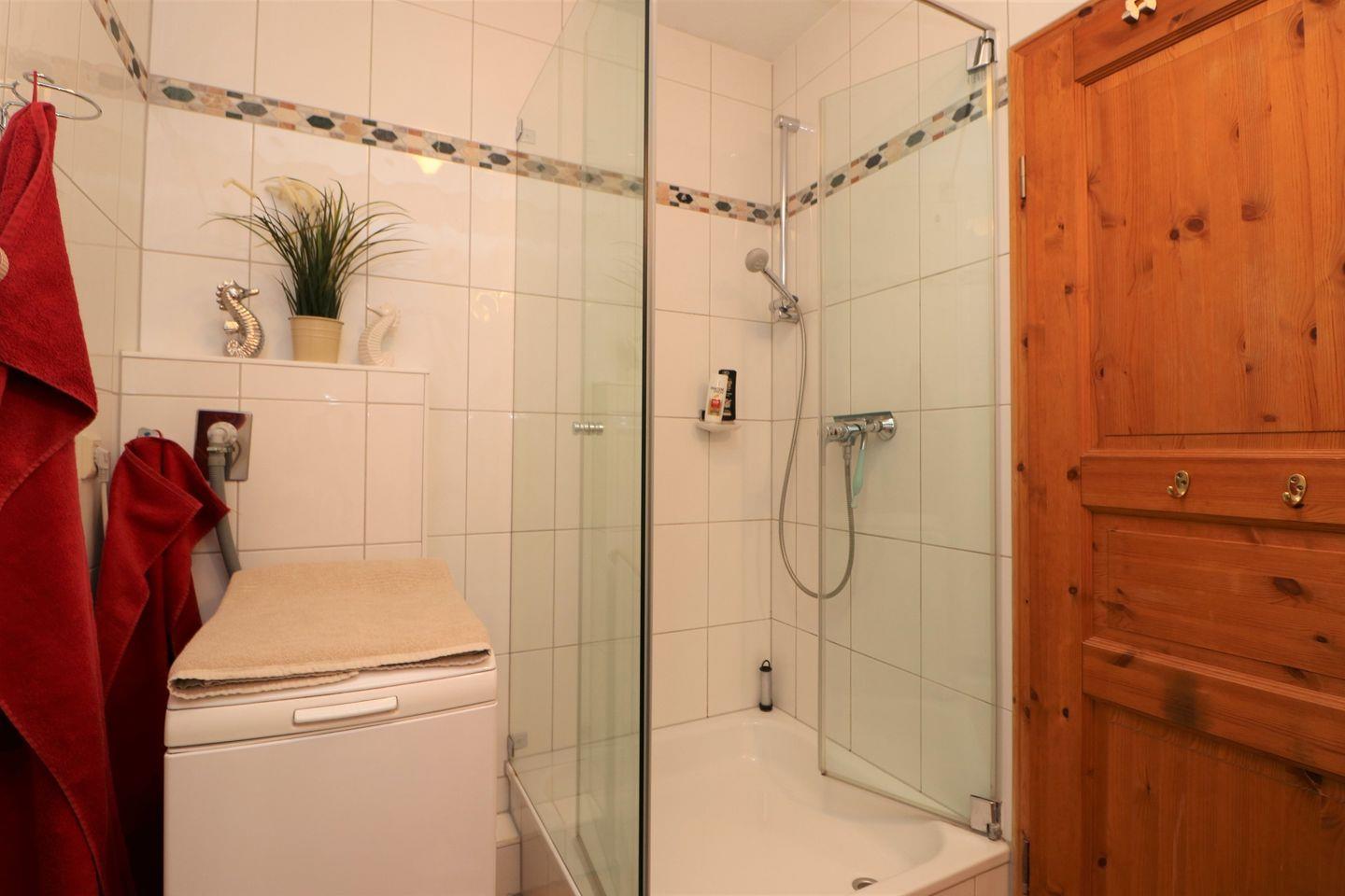 Der Balkon mit Süd-West-Ausrichtung ist ein weiteres Highlight. Hier können Sie den traumhaften Blick auf den Bodden genießen – sei es im Strandkorb oder auf der einladenden Sitzgruppe. Im Schlafzimmer sorgt ein komfortables Doppelbett für erholsamen Schlaf. Zusätzlich steht ein Zustellbett für eine dritte Person zur Verfügung, sodass auch Familien oder kleine Gruppen bequem Platz finden. Das Bad ist mit einer modernen Dusche und einem WC ausgestattet. Eine Waschmaschine steht Ihnen ebenfalls zur Verfügung, um Ihre Wäsche bequem zu waschen. Haustiere sind in diesem Appartement herzlich willkommen, sodass auch Ihr vierbeiniger Begleiter den Urlaub genießen kann. Das Rauchen ist jedoch im gesamten Appartement nicht gestattet. Leider steht in diesem Appartement kein W-LAN zur Verfügung. Ein Pkw-Stellplatz (Nr. 11) befindet sich direkt auf dem Grundstück der Ferienanlage.
