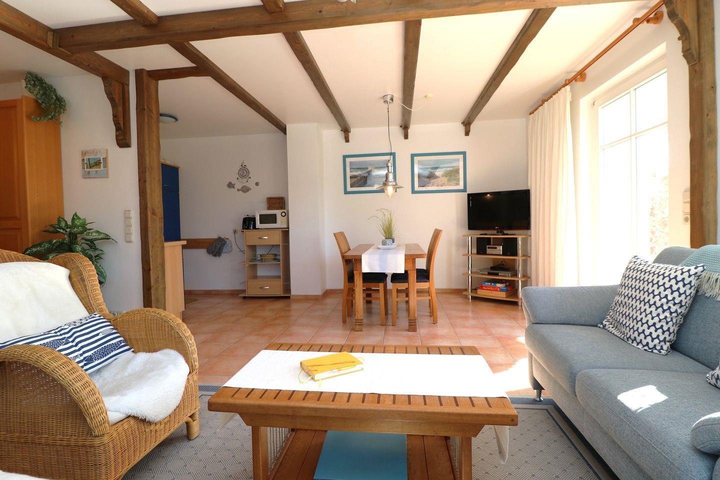 Dieses gemütliche Appartement im Erdgeschoss bietet auf 59 m² Platz für maximal 4 Personen und verfügt über einen separaten Eingang, der für zusätzlichen Komfort und Privatsphäre sorgt. Das Appartement umfasst ein Wohnzimmer mit integrierter Küchenzeile, die Ihnen ermöglicht, Ihre Mahlzeiten bequem zuzubereiten. Es gibt zwei Schlafzimmer: Ein Schlafzimmer mit Doppelbett und ein weiteres mit zwei Einzelbetten. Das Bad ist mit Dusche und WC ausgestattet. Für zusätzlichen Stauraum oder zum Abstellen von Fahrrädern oder Sportgeräten steht Ihnen ein abschließbarer Schuppen zur Verfügung. Die Südterrasse lädt zum Verweilen und Sonnenbaden ein – der perfekte Ort, um den Tag zu genießen. Ein Pkw-Stellplatz befindet sich direkt auf dem Grundstück und ist dem Appartement zugeordnet. Haustiere sind in diesem Appartement nicht gestattet, und das Rauchen ist nicht erlaubt. W-LAN steht Ihnen während Ihres Aufenthalts kostenlos zur Verfügung.