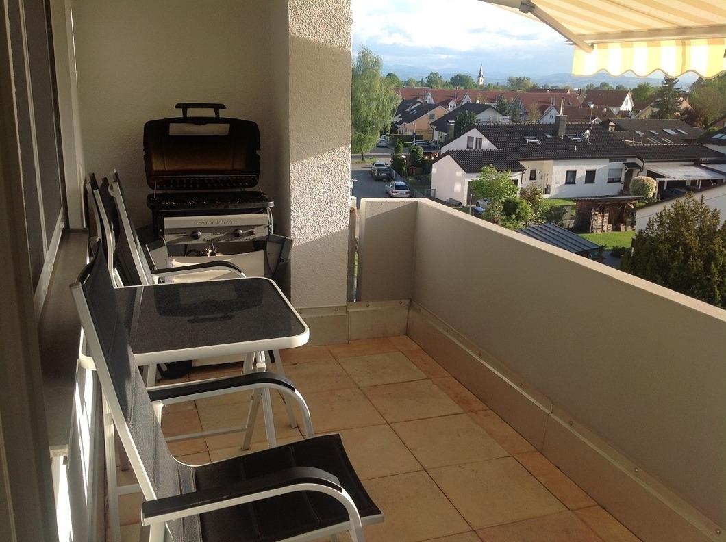 Geschmackvoll eingerichtete 60 m² Ferienwohnung in Eriskirch am Bodensee, mit möbliertem Balkon (incl. Gasgrill). 2016 umfassend neu gestaltet.