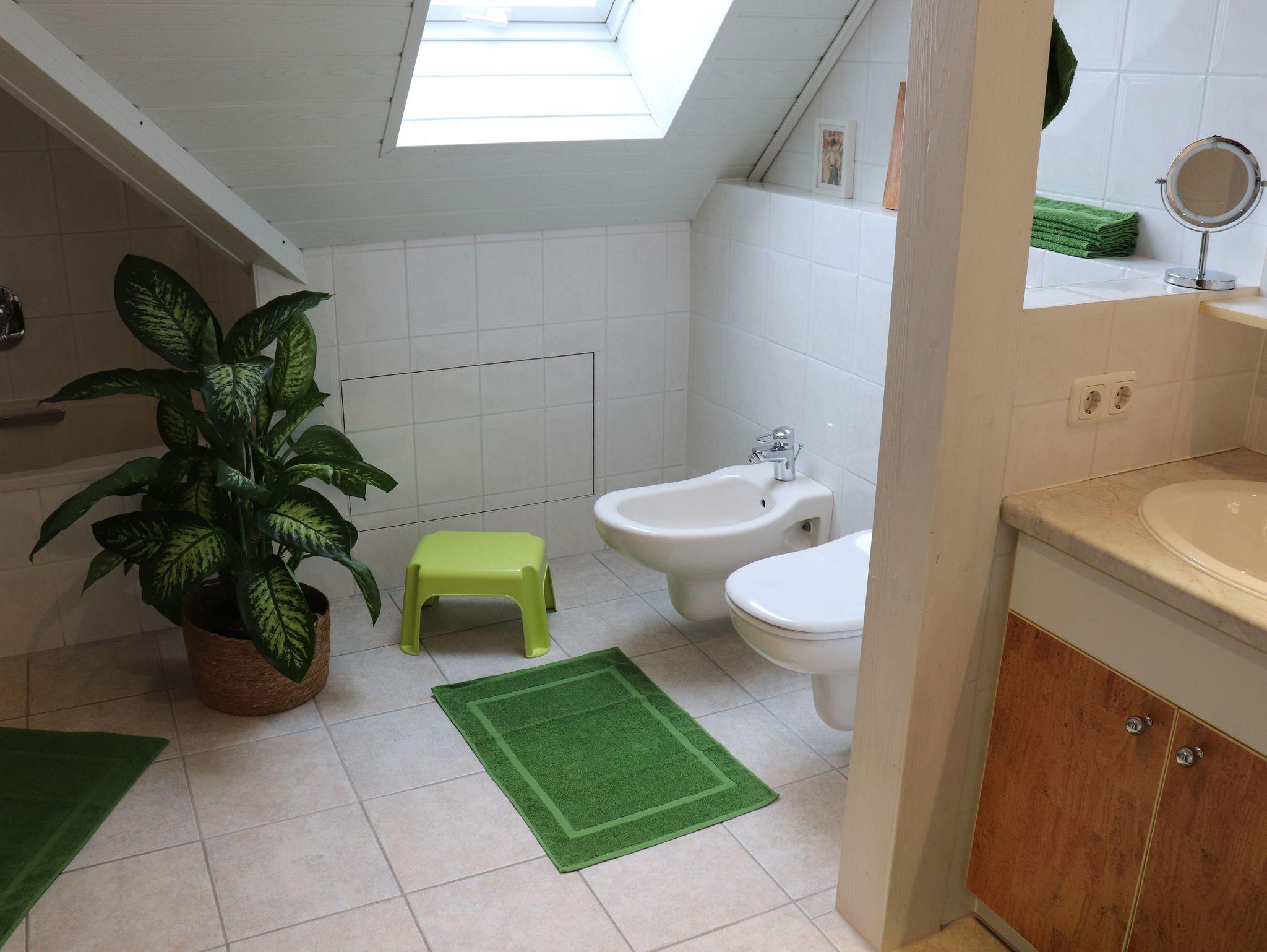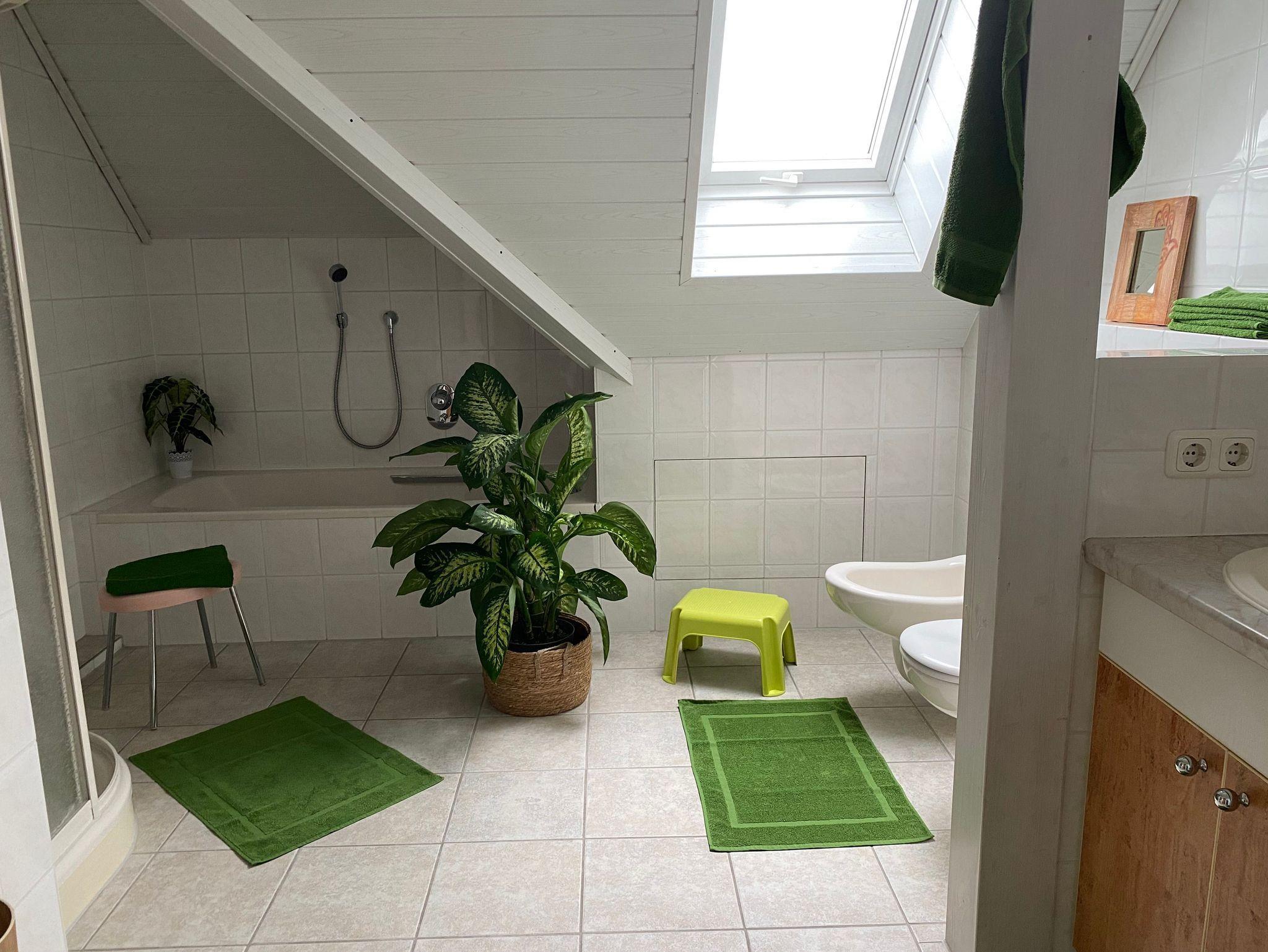 Im großzügigen Eingangsbereich befinden sich Garderobe mit Schuhschrank und ein Gäste WC. Das Auto kann direkt im Hof und Fahrräder in der Garage abgestellt werden. Freies WLAN steht zur Verfügung. Da die Ferienwohnung Allergiker geeignet ist, sind Hunde und andere Haustiere nicht gestattet.