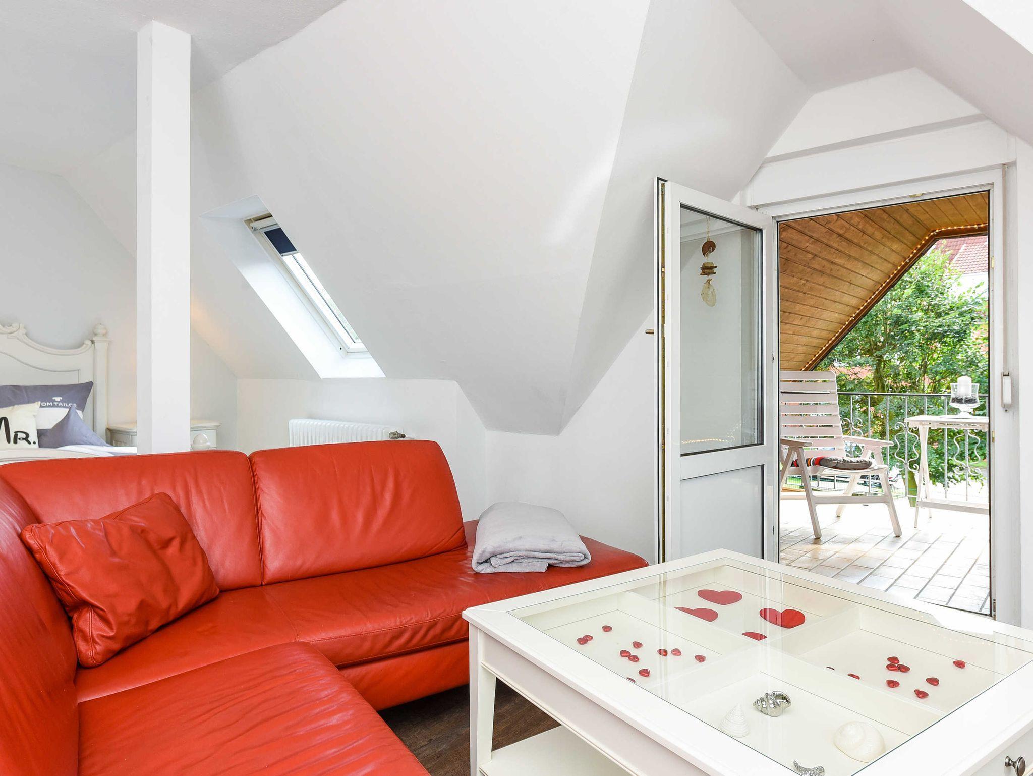 Größe ca. 50 Quadratmeter, Wohn- und Schlafraum, Küche, Badezimmer mit Dusche, Waschtisch und WC, Obergeschoss, Loggia (überdachter Balkon), optimal für 1 bis 2 Personen.