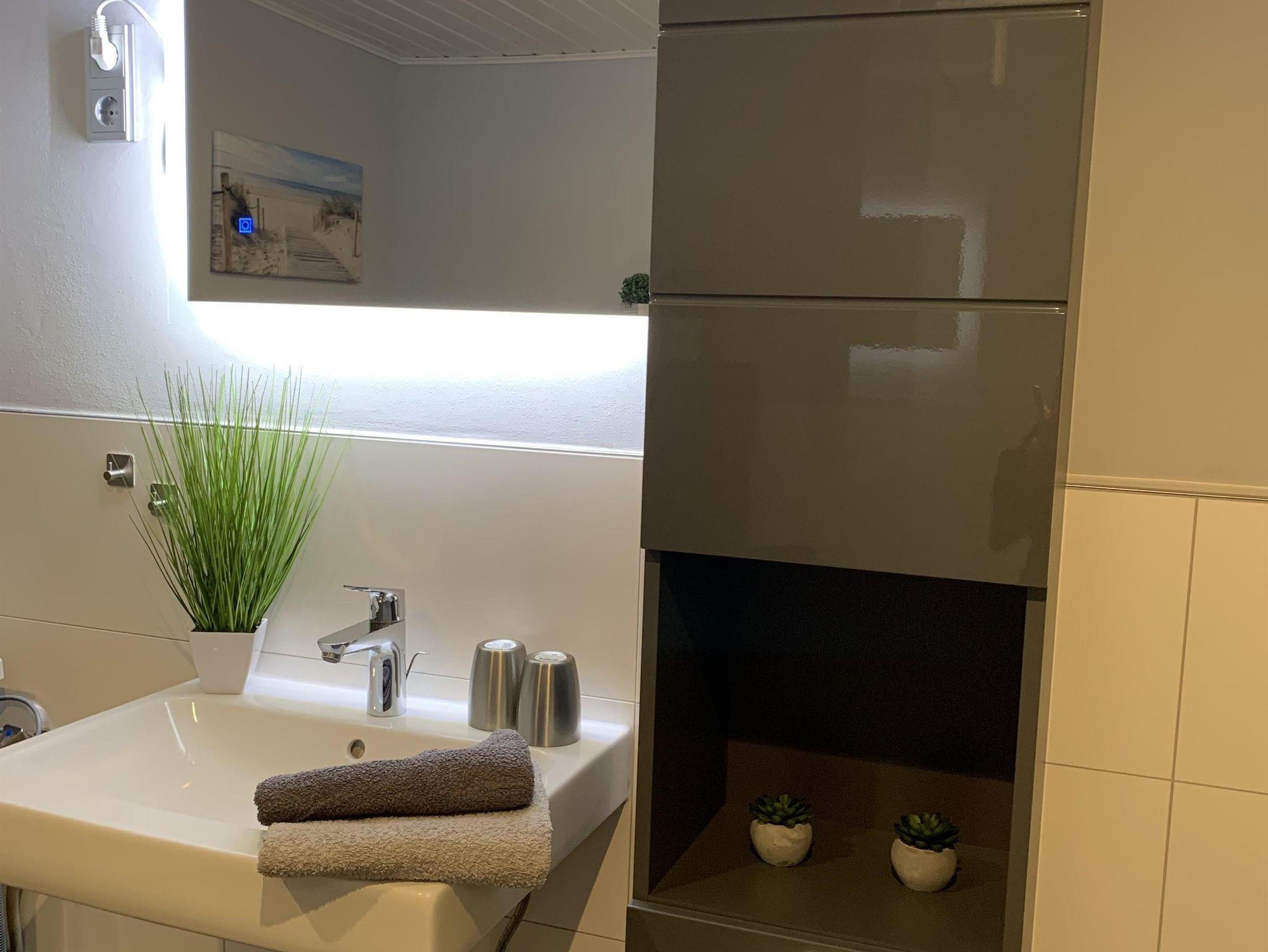 Bad, März 2022 neu renoviert:.Behindertgerechte Dusche ,Toilette,Waschbecken mit Spielgel,Waschmaschine,Hocker,Föhn,