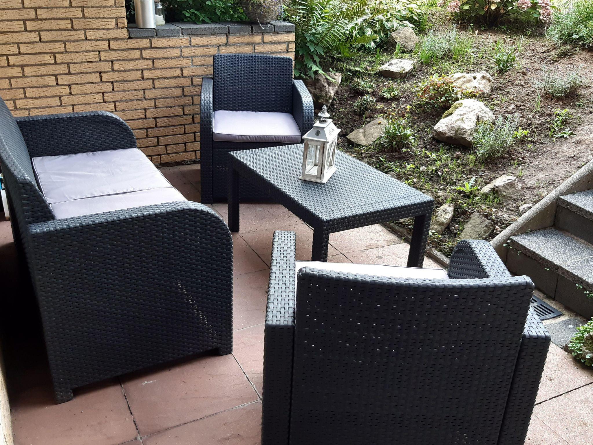 Der eingezäunte Garten mit Gartenhaus und gemauertem Grill ist zu Ihrer Alleinnutzung.