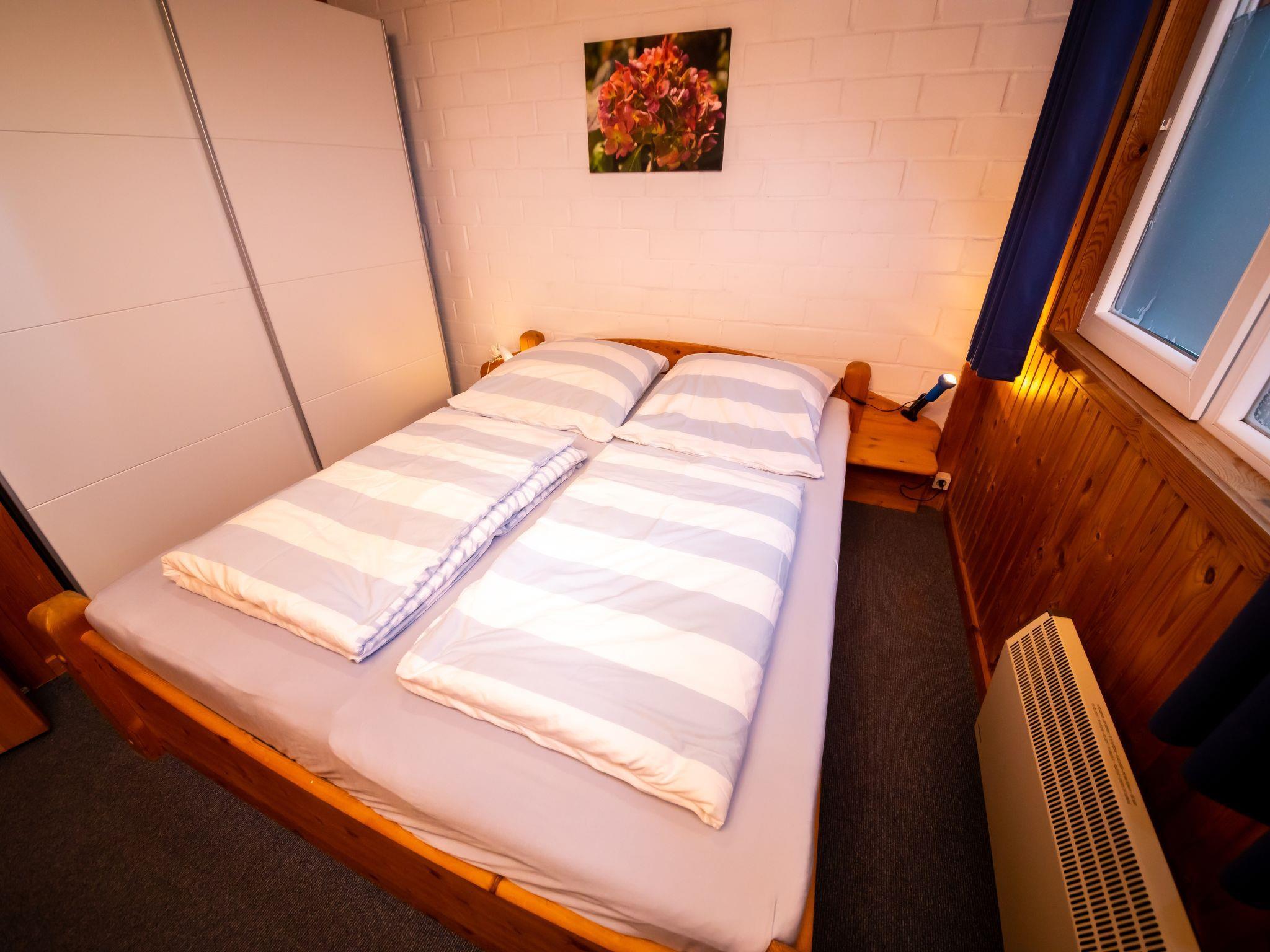 4-room semi-detached house 70 m2 on 2 levels, on the ground floor. Living/dining room with Scandinavian wood stove and satellite TV (flat screen), radio and DVD. Exit to the garden, to the terrace. 1 room with 1 double bed (2 x 80 cm, length 200 cm). Kitchenette (oven, 4 ceramic glass hob hotplates, microwave, electric coffee machine). Shower/WC. Upper floor: 1 room with sloping ceilings, without wardrobe with 1 bed. 1 double bedroom with sloping ceilings, without wardrobe with 1 double bed (2 x 90 cm, length 200 cm). Electric heating. Terrace roofed. Terrace furniture, deck chairs (2), box-room. Facilities: sauna, iron, children's high chair, logs (extra). Internet (WiFi, free). Please note: non-smoking house. Maximum 2 small pets/ dogs allowed. The shared wardrobe for the single- and double room is located on the corridor on the first floor. Bathroom with access to the sauna. 1 reserved parking space 20m from the house. Bookings accepted for holiday purposes only.