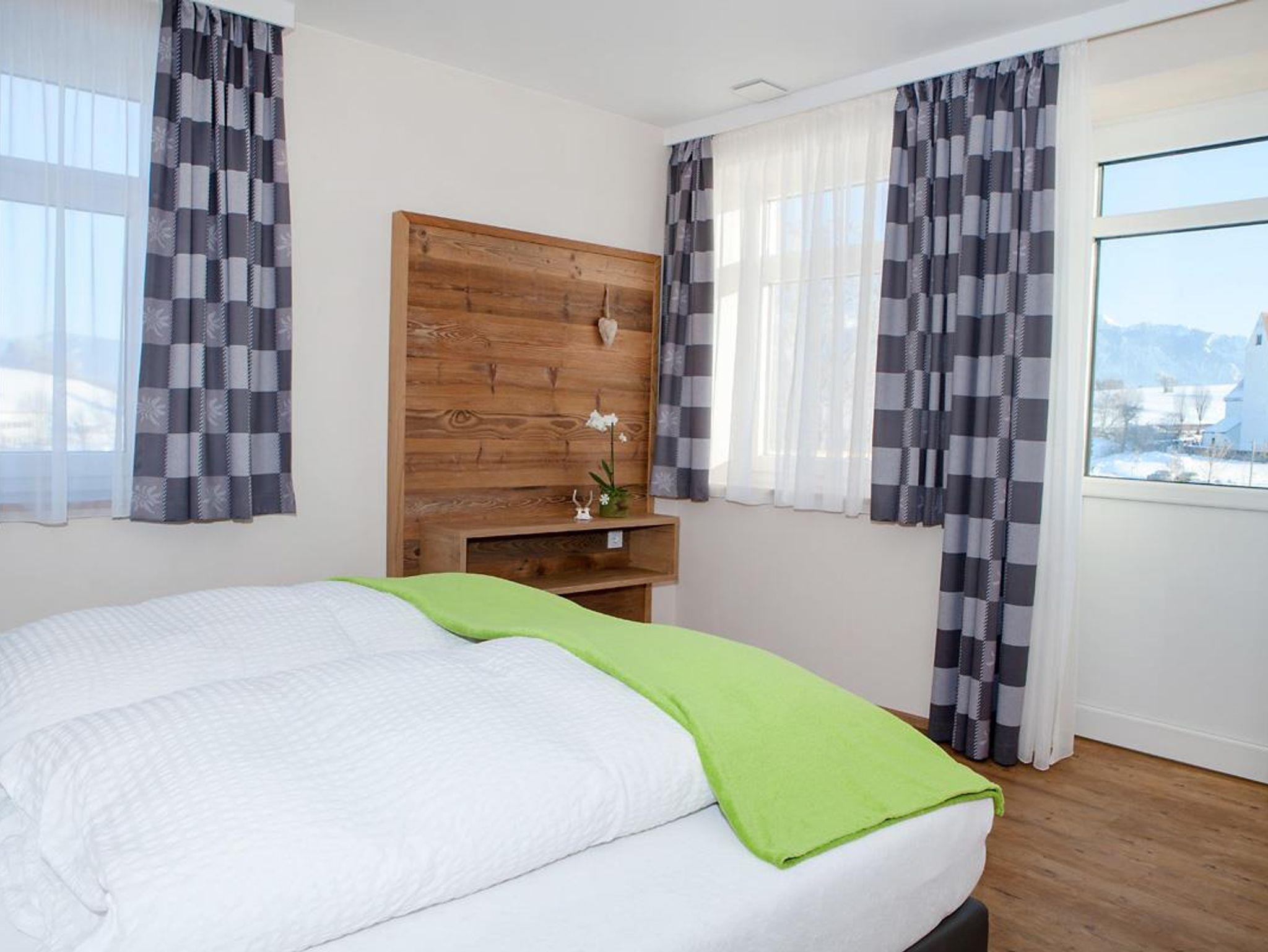 Die große, helle und ebenerdige Ferienwohung Thaneller im Allgäuer Stil mit Altholz (120 qm) ist bestens geeignet für 2 bis 5 Personen. An der Wohnung befindet sich eine Terrasse und ein Garten. Ein Pellett-Ofen im Wohnbereich sorgt für gemütliche Stunden. Geniessen Sie am großen Esstisch unser schönes Bergpanorama. Ein Ecksofa und gemütlicher Sofasessel mit Flachbild-TV laden zum Verweilen ein. Die Küchenzeile ist voll ausgestattet mit Spülmaschine, Backofen, Kühlschrank, Kaffeemaschine, Wasserkocher etc.. Es gibt zwei Schlafzimmer mit je einem Doppelbett. Zusätzlich gibt es ein Schlafzimmer mit einem Einzelbett. Die zwei Bäder mit Regendusche und WC runden das Gesamtbild ab.