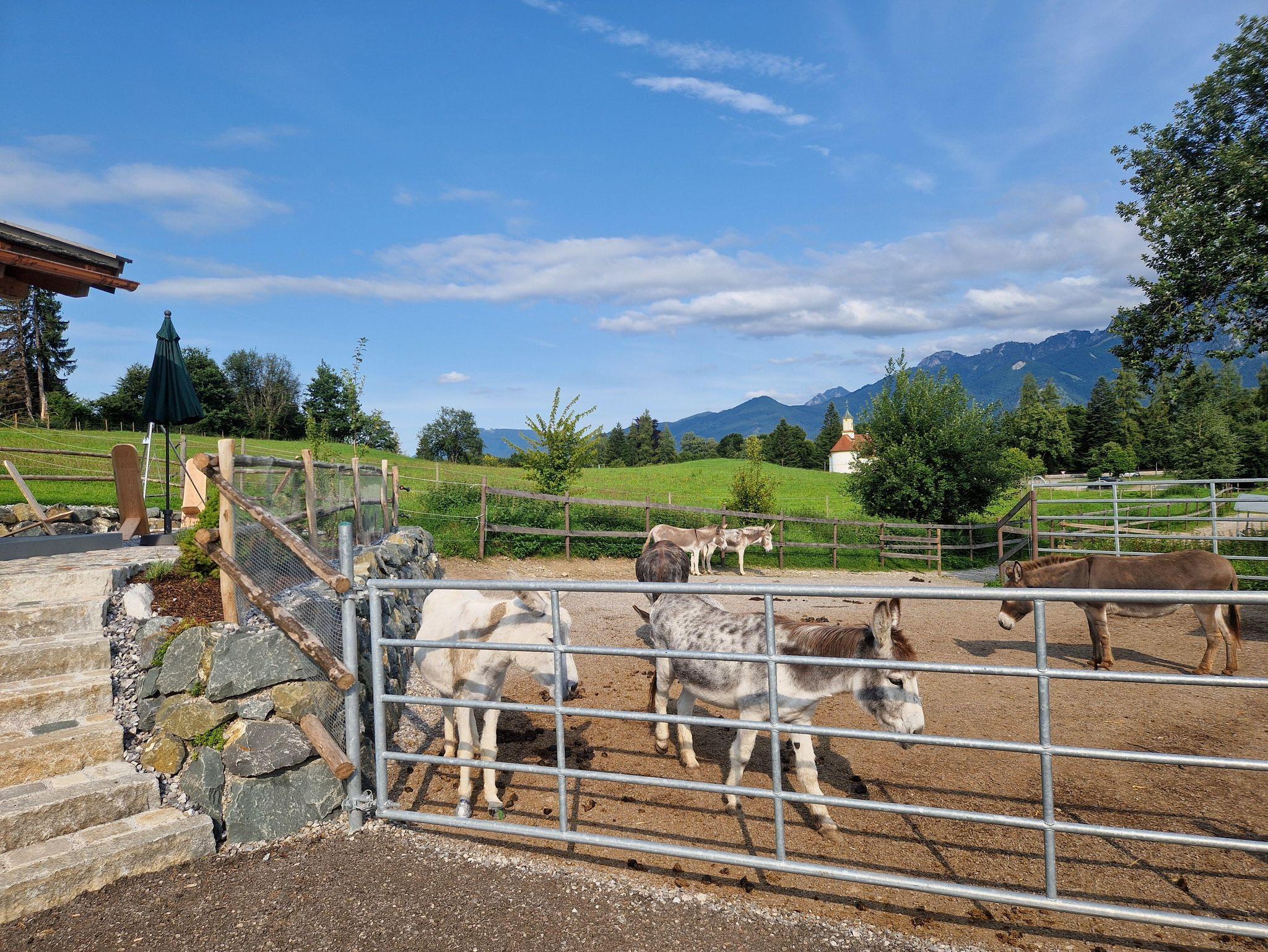 Unser Ferienhof ist ein ehemaliger Bauernhof, umgeben von 3,50 Hektar grünen Wiesen. Hier befinden sich zwei Offenställe mit Pferden und Eseln. Von unseren Hausbergen, dem „Galgenbichel“ und dem Stierbichel, erwartet Sie ein herrlicher Blick auf ganz Füssen, den Forggensee, das prächtige Bergpanorama und die Schlösser von König Ludwig II.