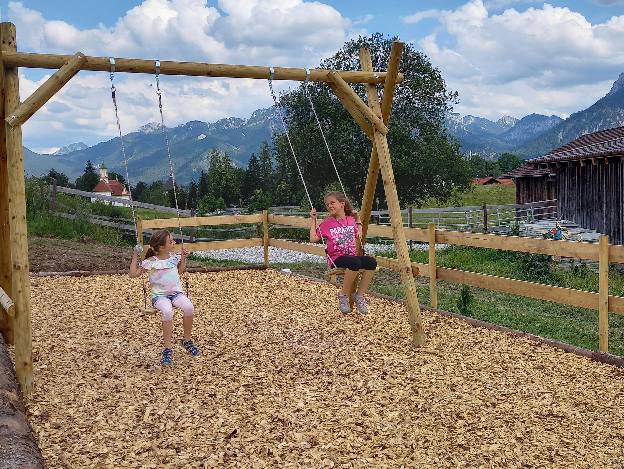 Unser Ferienhof ist ein ehemaliger Bauernhof, umgeben von 3,50 Hektar grünen Wiesen. Hier befinden sich zwei Offenställe mit Pferden und Eseln. Von unseren Hausbergen, dem „Galgenbichel“ und dem Stierbichel, erwartet Sie ein herrlicher Blick auf ganz Füssen, den Forggensee, das prächtige Bergpanorama und die Schlösser von König Ludwig II.
