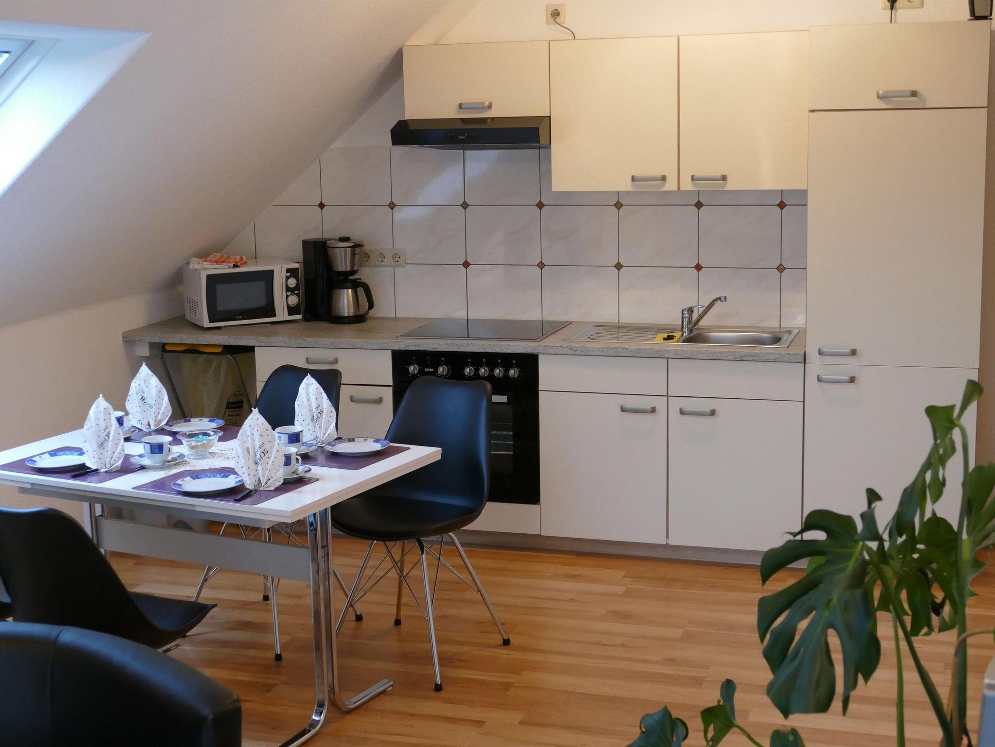 Die 50 m² große Ferienwohnung für zwei bis vier Personen (zwei Erwachsene und zwei Kinder) verfügt über eine gute Ausstattung. Komplett eingerichtete Küche (offen zum Wohn-/Schlafzimmer) mit Geschirr, Töpfen, Pfannen, Kaffeemaschine, Toaster, Wasserkocher, 4-Platten E-Herd mit Backofen, Kühlschrank. Gemütliches Wohn-/Schlafzimmer mit Sitzecke und SAT-TV. Sep. Schlafzimmer, Bad mit Dusche/WC, Balkon. Bettwäsche, Handtücher, Endreinigung und Nebenkosten inklusive.