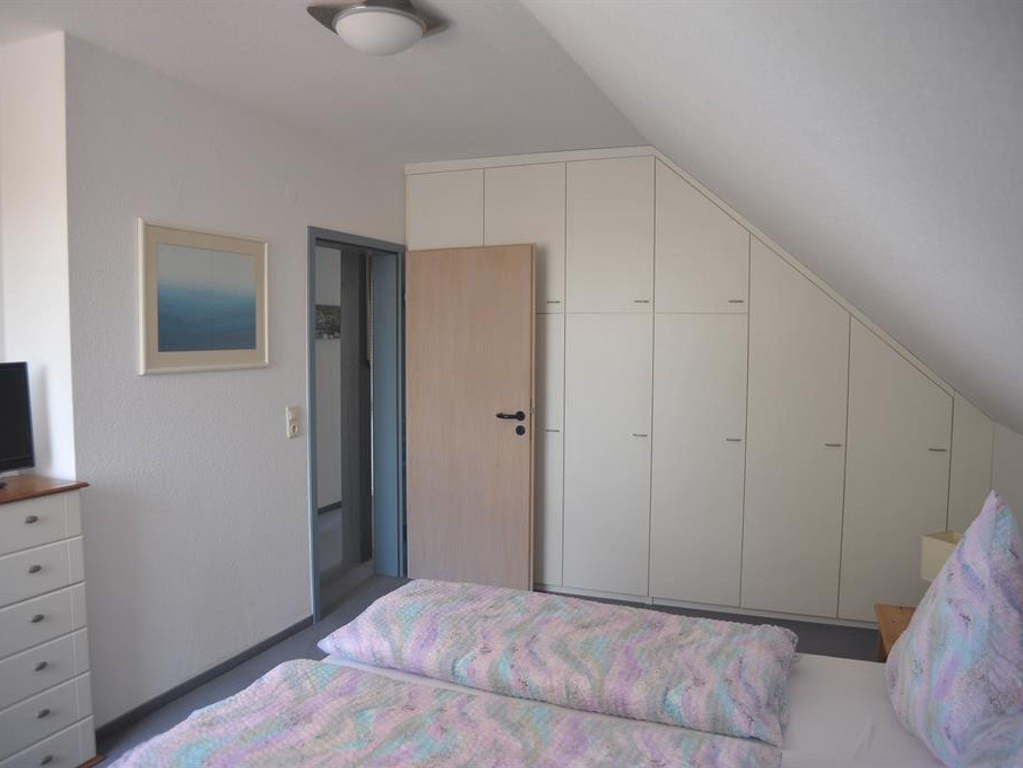 1 Schlafzimmer mit Doppelbett und eingebautem 3,5 m langem Schrank, TV.