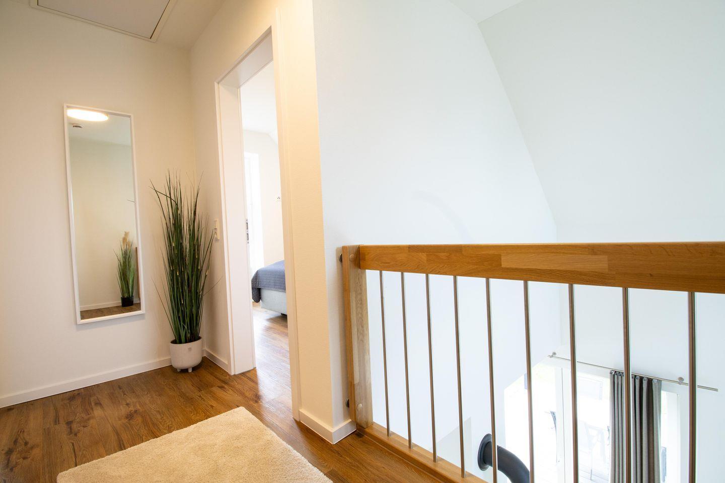 Das moderne Badezimmer im Obergeschoss überzeugt mit Sauna, Dusche und Badewanne – ideal für deine persönliche Auszeit. Ein zweites Bad mit Dusche und WC im Erdgeschoss rundet den Komfort ab.