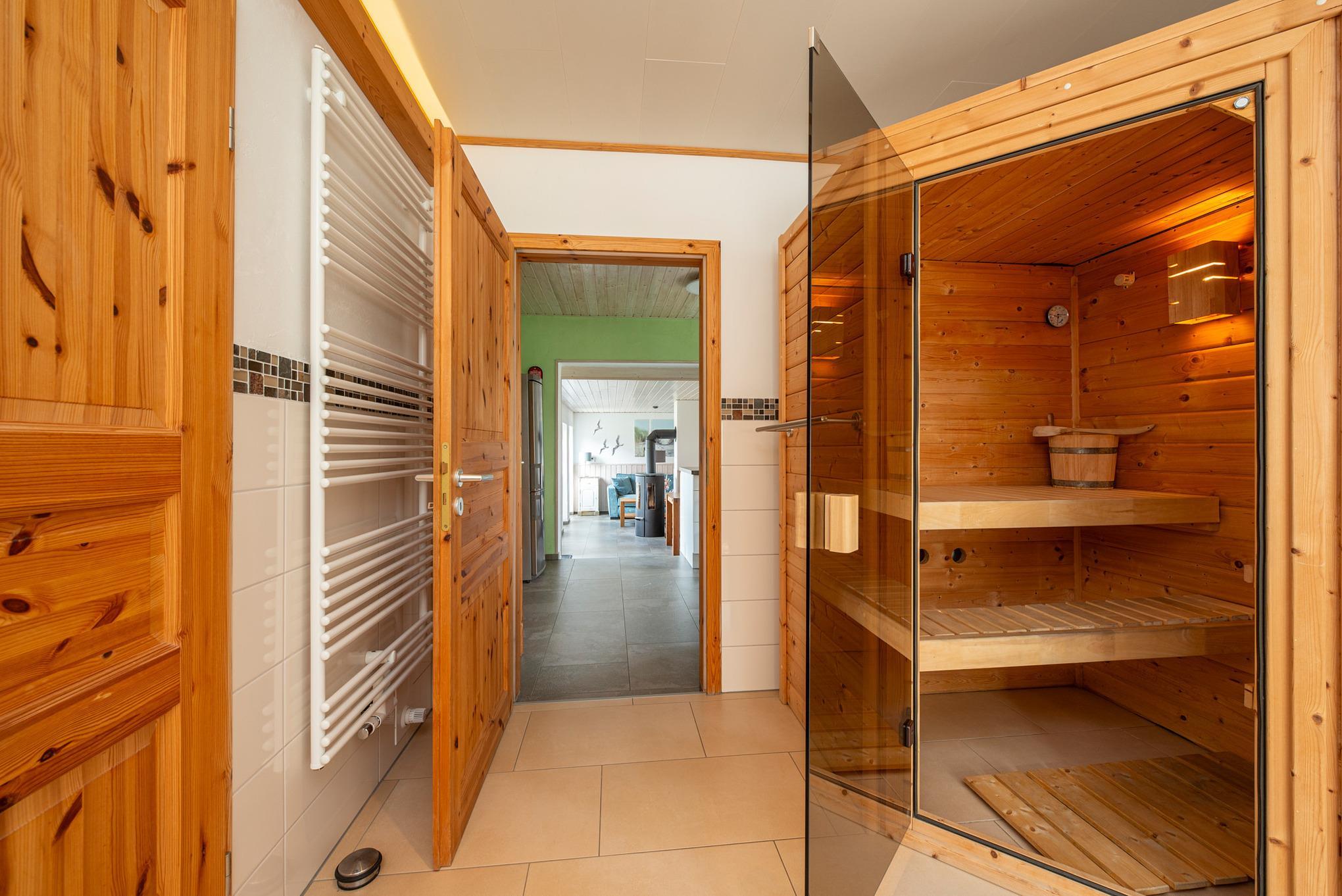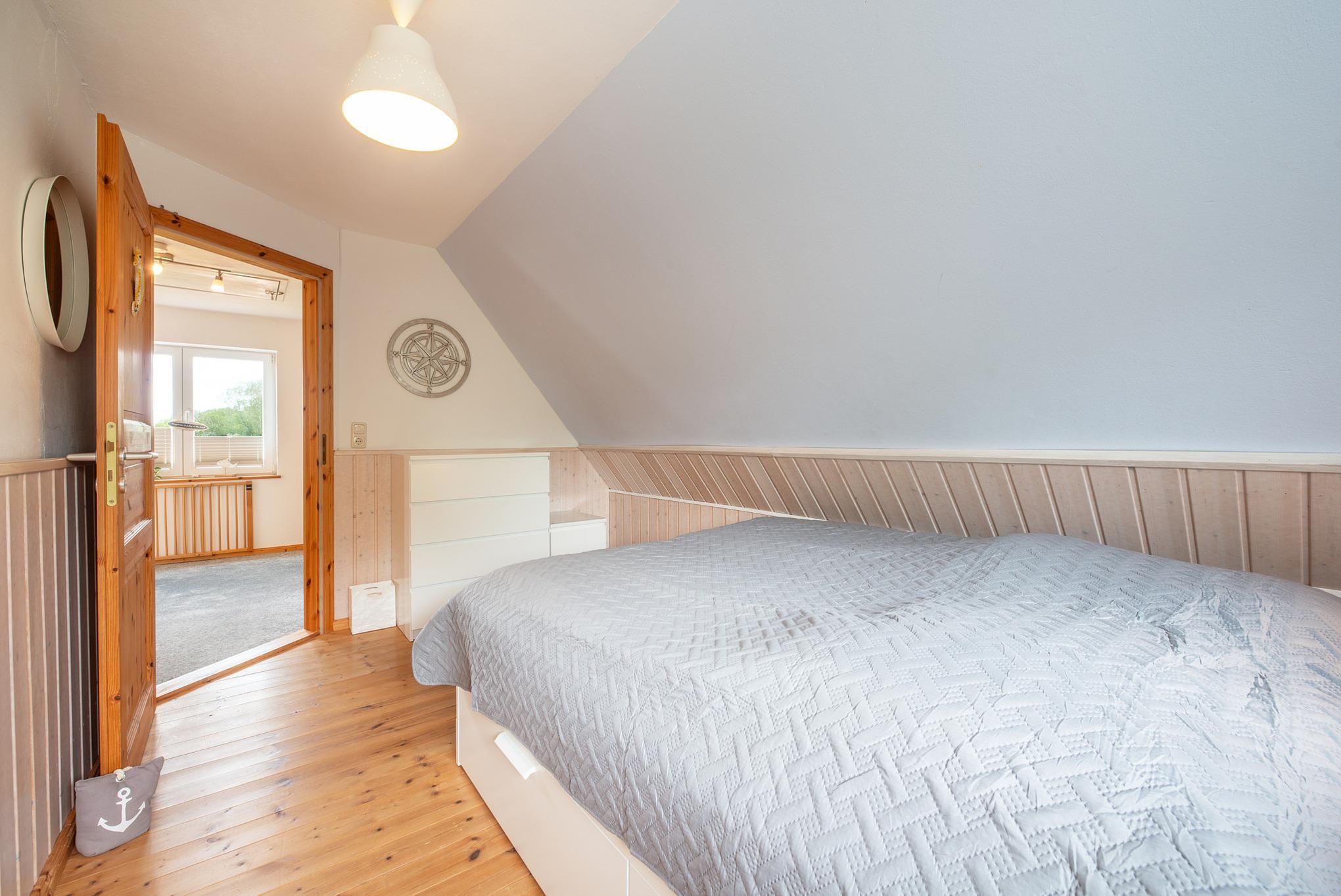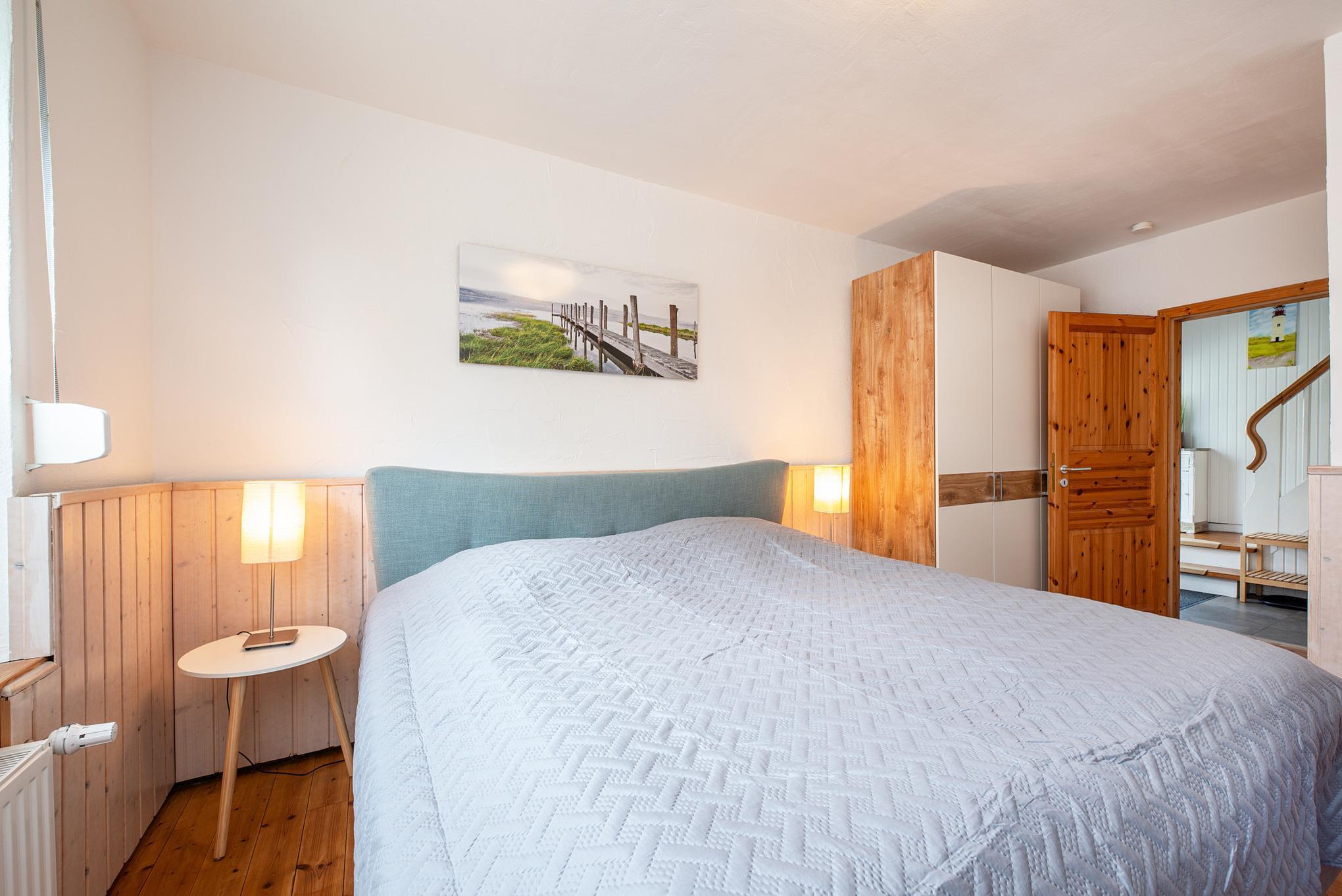 Perfekt für Familien! Der offene Wohnbereich verfügt über einen Kaminofen, ein gemütliches Sofa und einen Satelliten-LED-TV (Blue-Ray-Player, 2.1-Soundsystem plus USB-Anschluss) sowie einen schönen Essbereich mit 8 Stühlen und einer Radio-Kompakt-Anlage (CD, USB, Radio und Bluetooth). Von hier haben Sie Zugang auf die große Terrasse mit Gartenmöbeln, Liegen, eigenem Strandkorb und Grill zum Ausspannen. Die Kinder können im 800 m² großen Garten spielen und toben. Vorhanden sind ein Schaukelgerüst, ein Trampolin und eine Sandkiste. Die gut ausgestattete Küche bietet u.a. mit einer Spülmaschine, einem großen Kühlschrank, einer Mikrowelle und einer Nespresso-Kapselmaschine die Möglichkeit, das Kochen zu genießen. Im Abstellraum befinden sich eine Waschmaschine und weiterer Stauraum. Vom Schlafzimmer mit Doppel-Boxspringbett (180x200 cm) ist ein Extrazugang zum großen Wellness-Badezimmer mit Dusche, Badewanne und Sauna möglich. Die Fußbodenheizung sorgt auch bei schlechtem Wetter für Wohlfühlatmosphäre. Im Obergeschoss sind zwei Schlafzimmer mit einem Doppelbett (160x200 cm) bzw. zwei Einzelbetten (je 90x200 cm). Hier befindet sich auch ein Duschbad, sodass mit 8 Personen kein Gedränge entsteht. Durch einen niedrigen Gewölbeeingang gelangen Kinder in den Spielboden. Hier ist ausreichend Platz zum Spielen und Schlafen. Abends können die Kinder in den zwei gemütlichen Bettnischen (je 90x200 cm) zur Ruhe kommen und von den erlebten Abenteuern träumen. Die Fenster können mit Rollläden verdunkelt werden.