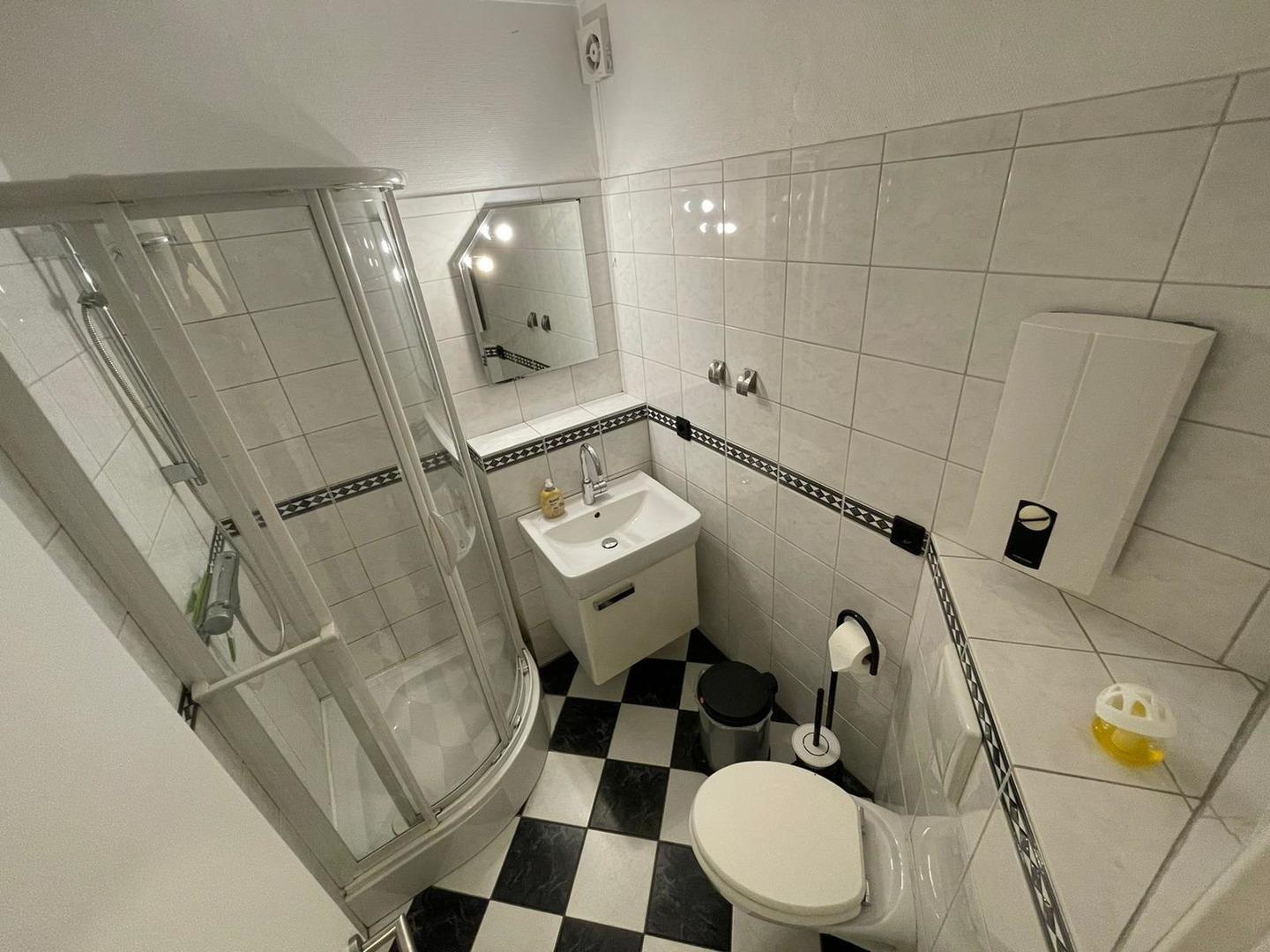 Die Pantry ist vom Wohn- und Schlafbereich getrennt. Sie ist hochwertig ausgestattet mit Kühlschrank mit Gefrierfach, Herd mit Cerankochfeld sowie allen erdenklichen Küchenutensilien. Das hell geflieste Bad mit Dusche und WC runden die Ferienwohnung ab. Ihren PKW können Sie direkt vorm Haus parken.