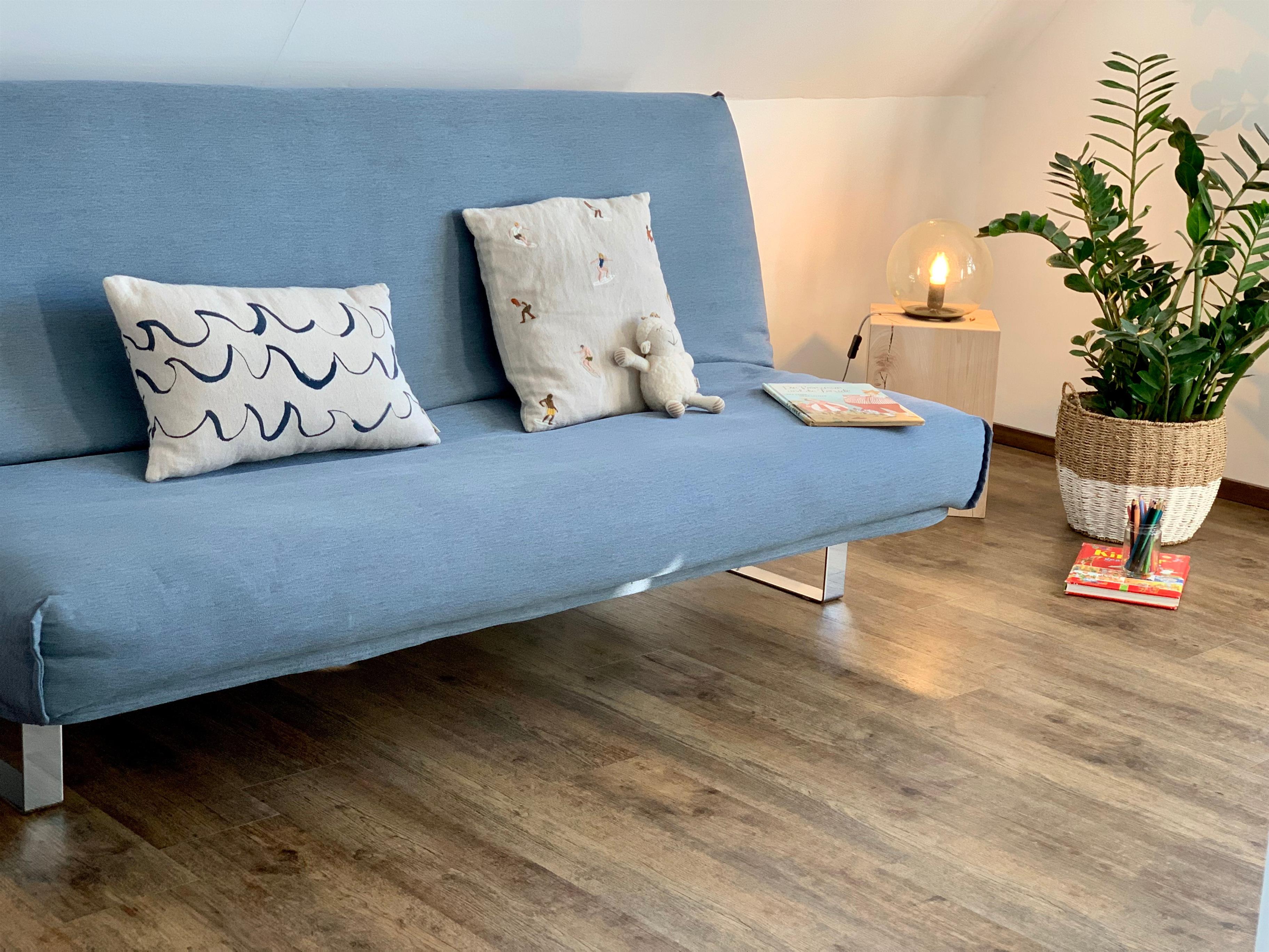 In der gemütlichen ca. 40 qm großen Wohnung wirst du dich wie zu Hause fühlen. Die Einrichtung ist modern und im Surfer-Stil gehalten. Das Schlafzimmer ist mit einem gemütlichen und hochwertigen Boxspringbett (1,60m x 2,00m) ausgestattet. Das Wohn-/Schlafzimmer hat ein großes und sehr bequemes Boxspring-Schlafsofa (1,60m x 2,00m), auf dem es sich bestens erholen lässt. So können bis zu 4 Erwachsene oder eine kleine Familie mit Kindern sich hier einquartieren.
