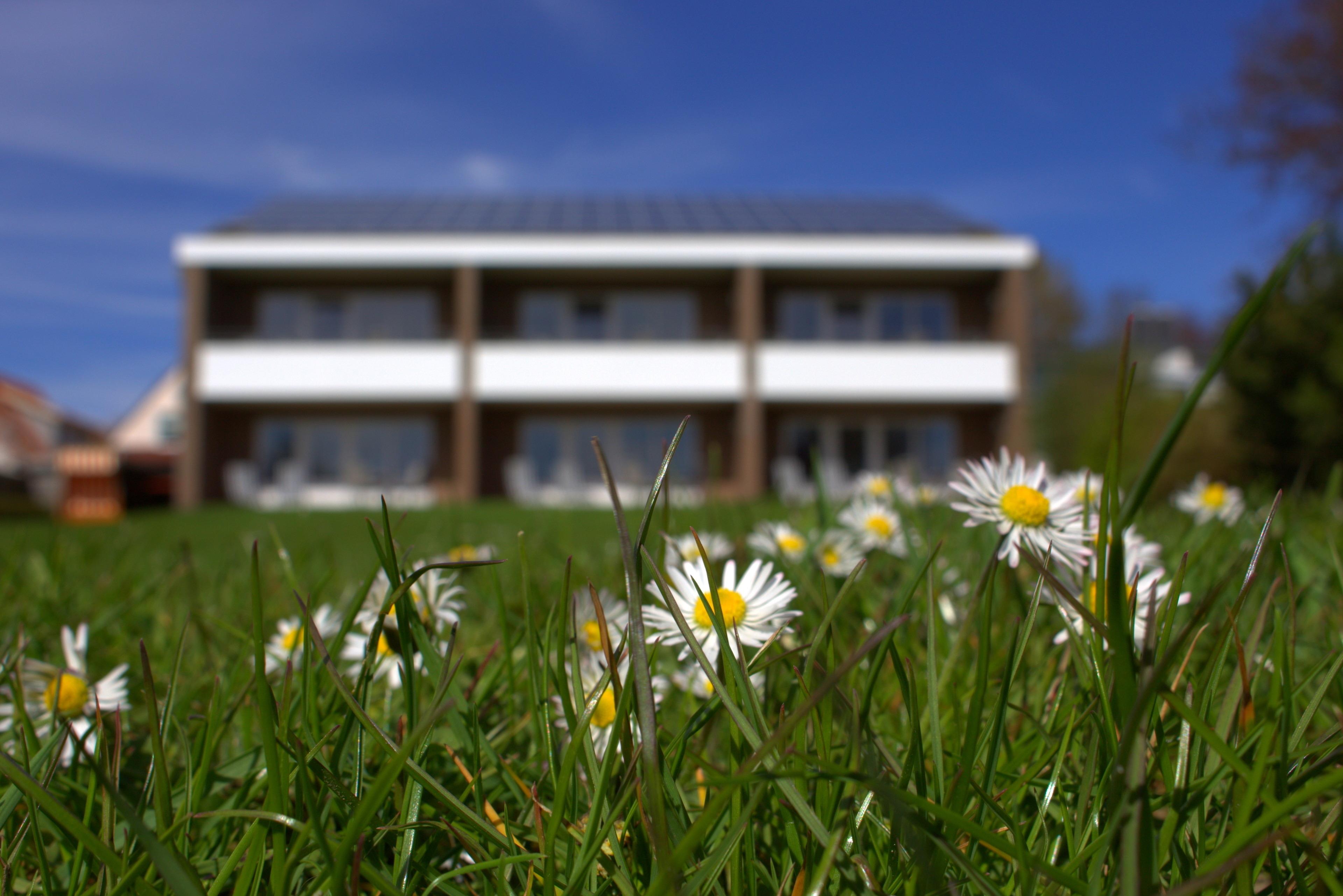 Viel Freiraum zum Spielen ist auf der Wiese am Haus mit dem großzügig angelegten Spielplatz.