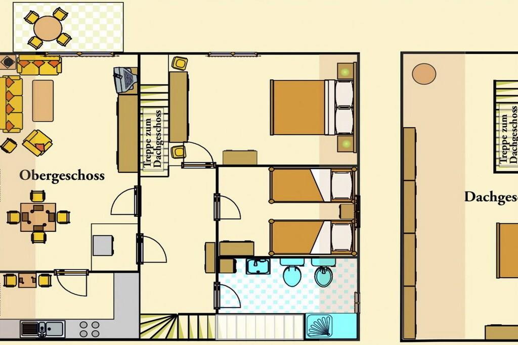 Ferienwohnung am Golfplatz (Ober- u. Dachgeschoss) 100qm für 6 Personen. 1 großzügiges Wohnzimmer mit Sitzgruppe und Esssitzgruppe. 3 Schlafzimmer, Bad mit Badewanne. Küche mit Spülmaschine, Waschmaschine, Mikrowelle und Backofen. Die Ferienwohnung befindet sich ca 500 m vom Kern des Ferienparks entfernt, Ausrichtung: Süd/West- zur Ortschaft. Der mit zu benutzende großzügige Garten und eigener Sitzecke grenzt direkt am Golfplatz Fehmarn. Ein Carport und Sportgeräteschuppen befinden sich vor dem Ferienhaus. Besonders geeignet ist die Ferienwohnung für Golfer. Unsere Gäste erhalten auf dem Golfplatz einen Vorzugssonderpreis. Sie können im voraus eine "Unlimited Flatrate" zu einem Superpreis buchen. Unser besonderer Service: Die Bettwäsche, Handtücher und Geschirrtücher sind für den Erstbezug inclusive. Das Doppelbett ist bereits bezogen. Als Gäste des Ferienparks können Sie die weiteren Vorteile nutzen (Schwimmbad, Sauna, Freizeitangebote, Animation und Wellnessangebote). Unsere verschiedenen Restaurants bieten Ihnen auch Frühstücksservice, Halb- oder Vollpension.