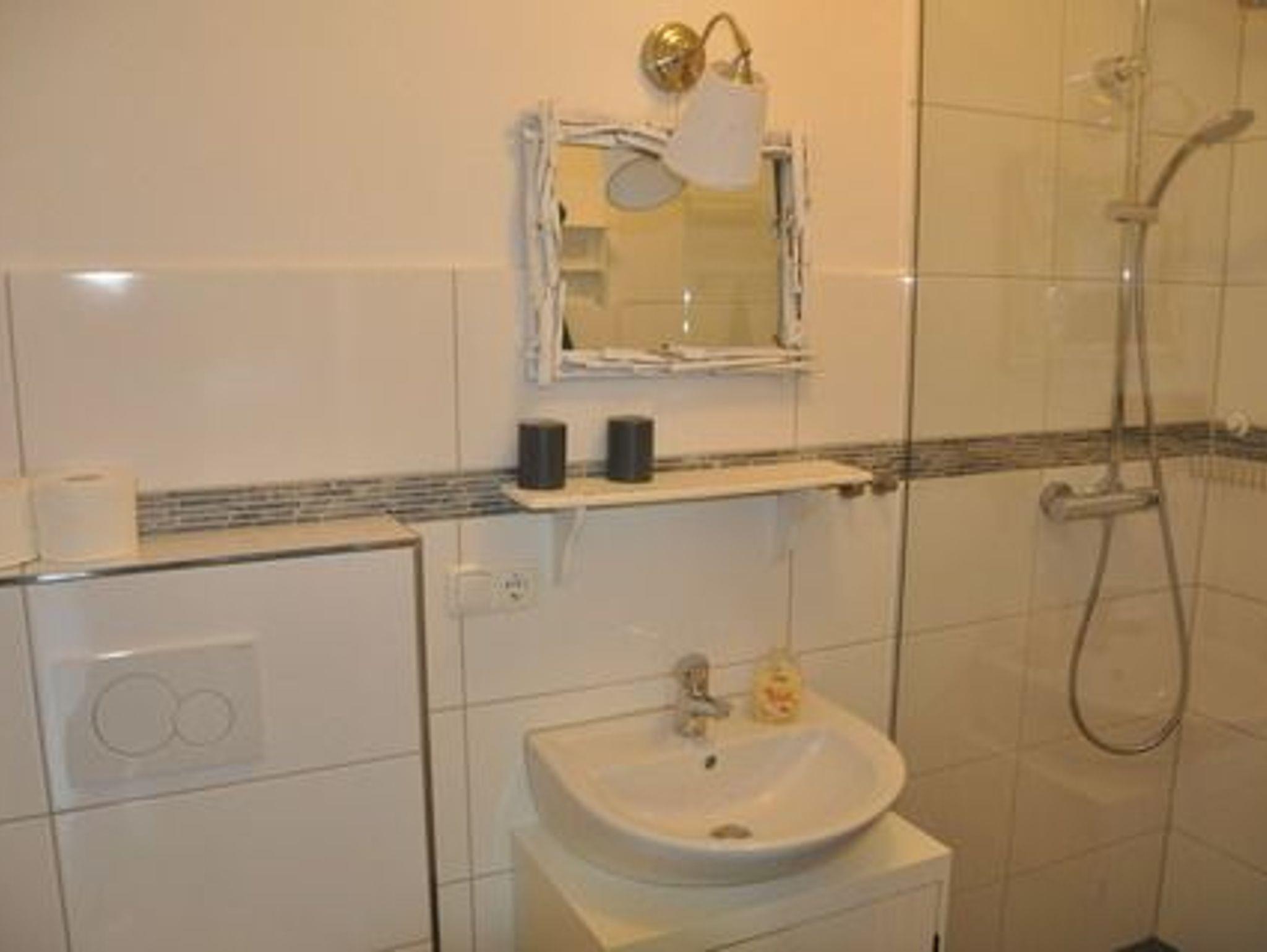 Eine eigene Küchenzeile und eigenes Badezimmer mit Dusche