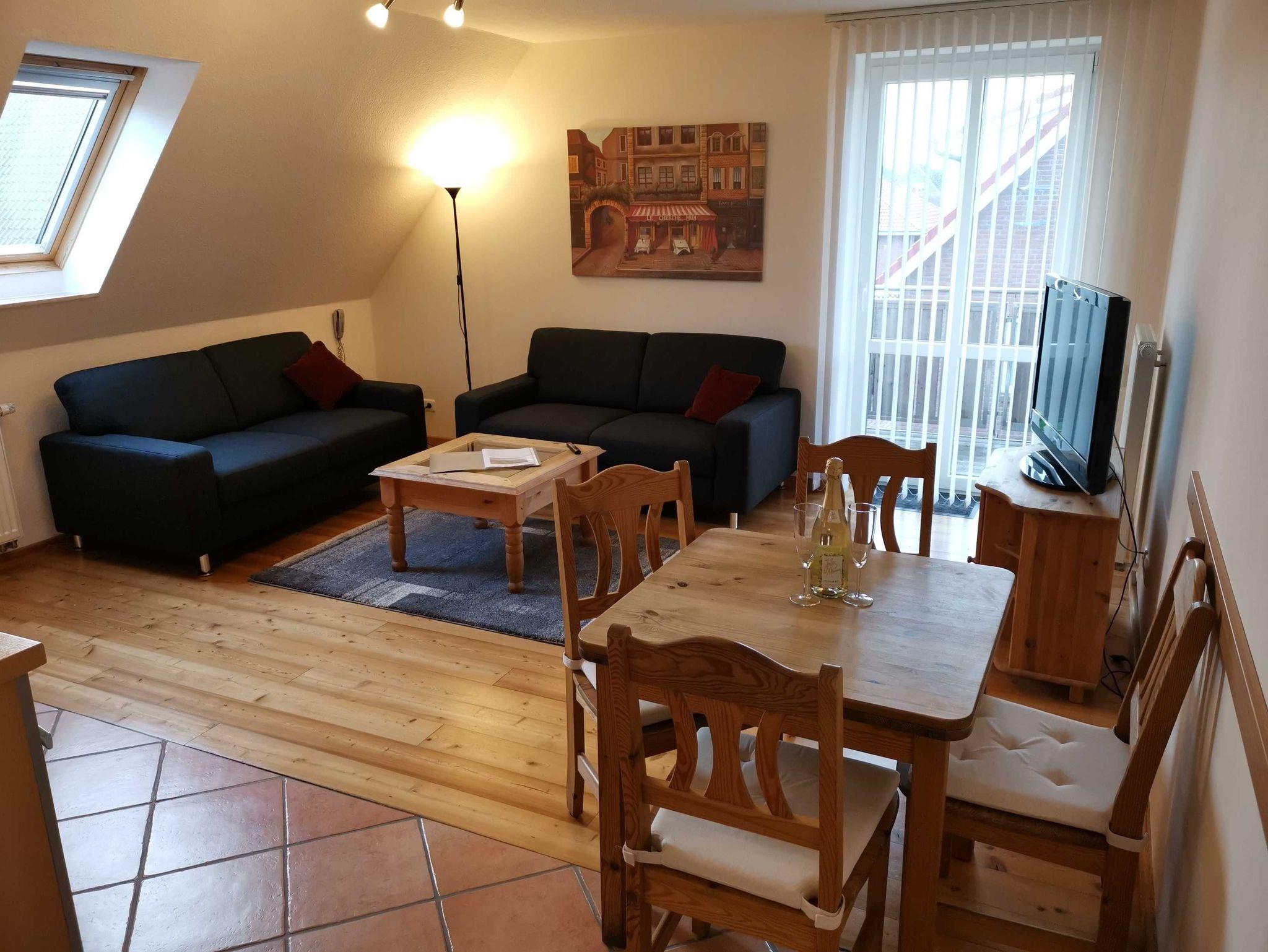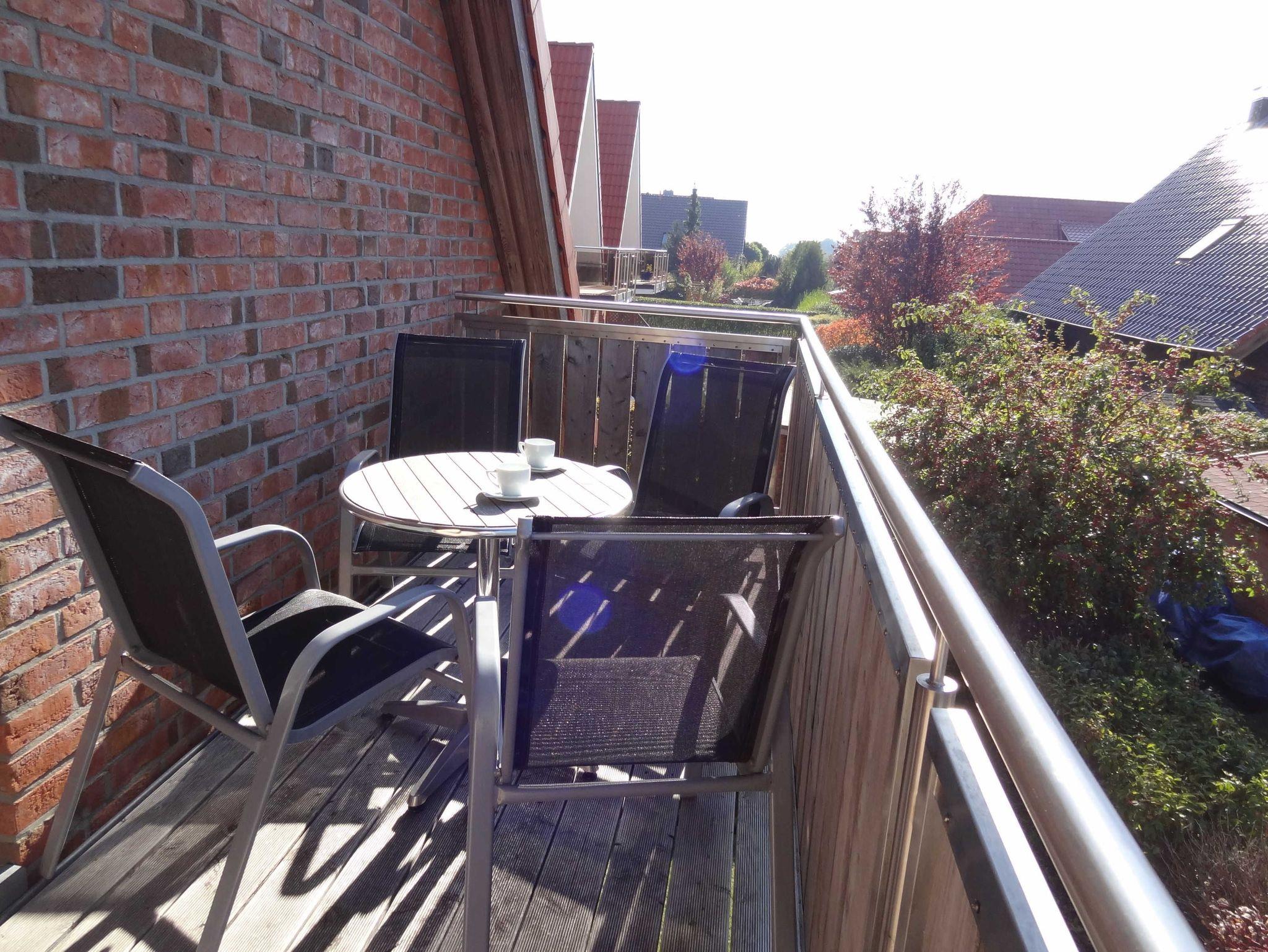 Die Ferienwohnung im Obergeschoss ist mit ca. 48 qm für bis zu 3 Personen ausgelegt und verfügt über einen Wohnraum mit Küchenzeile incl. Spülmaschine, ein Bad mit Dusche und zwei Schlafzimmer. Der große Balkon ist zum Westen ausgerichtet. Sie können von mittags bis abends die Sonne genießen. Weitere Ausstattungsmerkmale: 32 Zoll Full-HD LCD-TV, Telefon kostenlos ( deutsches Festnetz außer Sondernummern ), PC-Anschluss DSL kostenlos, PKW-Stellplatz, Fahrradstellplatz, Waschmaschinennutzung.