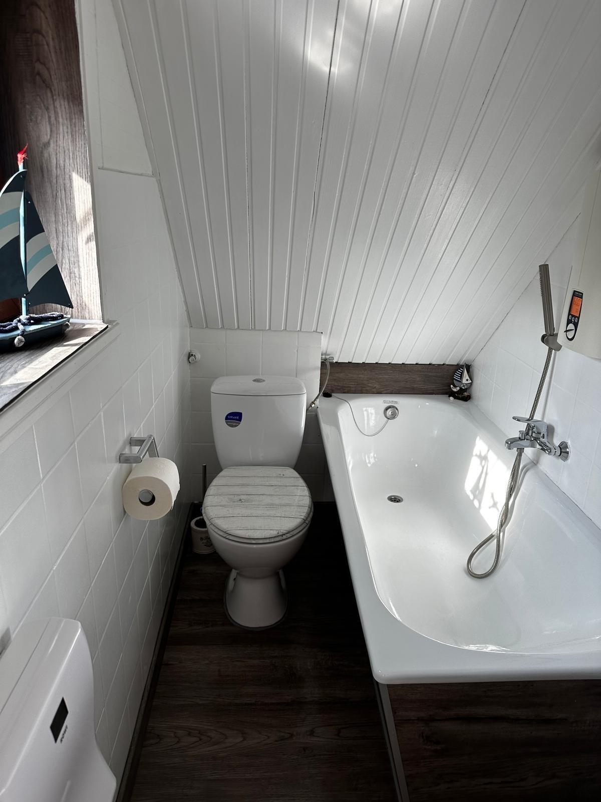 Schrankplatz ausgestattet und ein anschließendes Badezimmer mit Dusche. Von dort aus gelangt man auf eine kleine Terrasse. Das obere Schlafzimmer ist ebenfalls mit Doppelbett und anschließendem Badezimmer mit Badewanne ausgestattet. Ein Zimmer mit einem vollwertigem Ausziehbett für ein Kind ausgestattet.