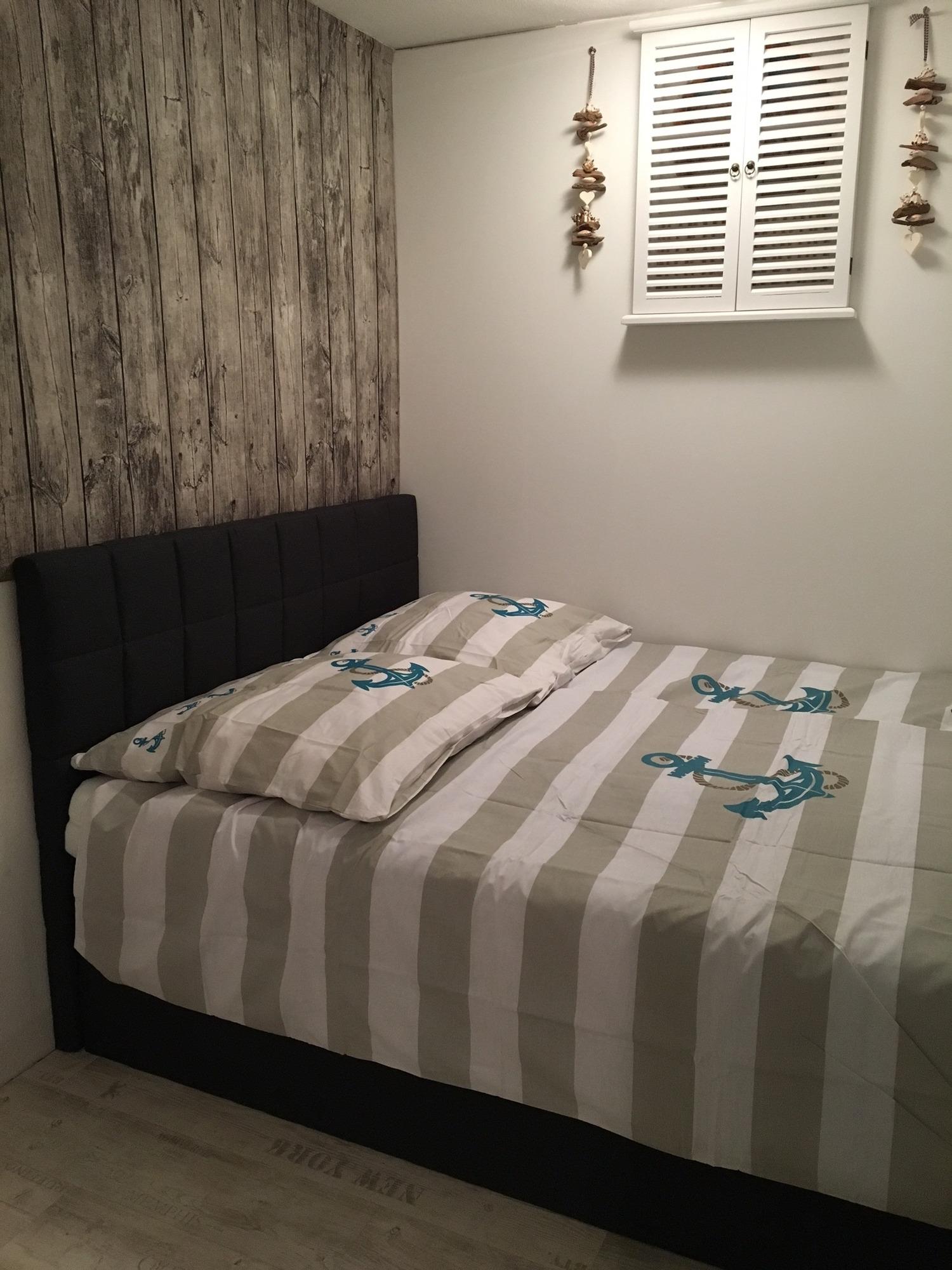1 Schlafzimmer mit Boxspringbett und Bullaugenfenster