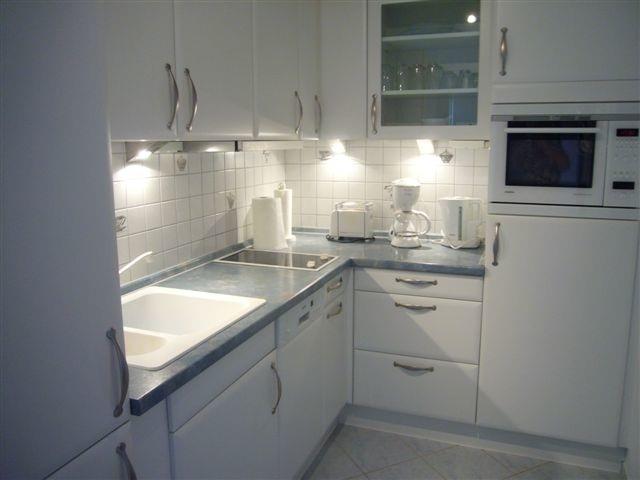 Die helle Küche ist mit einem Backofen/Mikrowelle, Cerankochfeld, Kühlschrank mit Eisfach, Geschirrspülmaschine, Kaffeemaschine, Toaster etc. startklar für ein tolles Sommermenü.