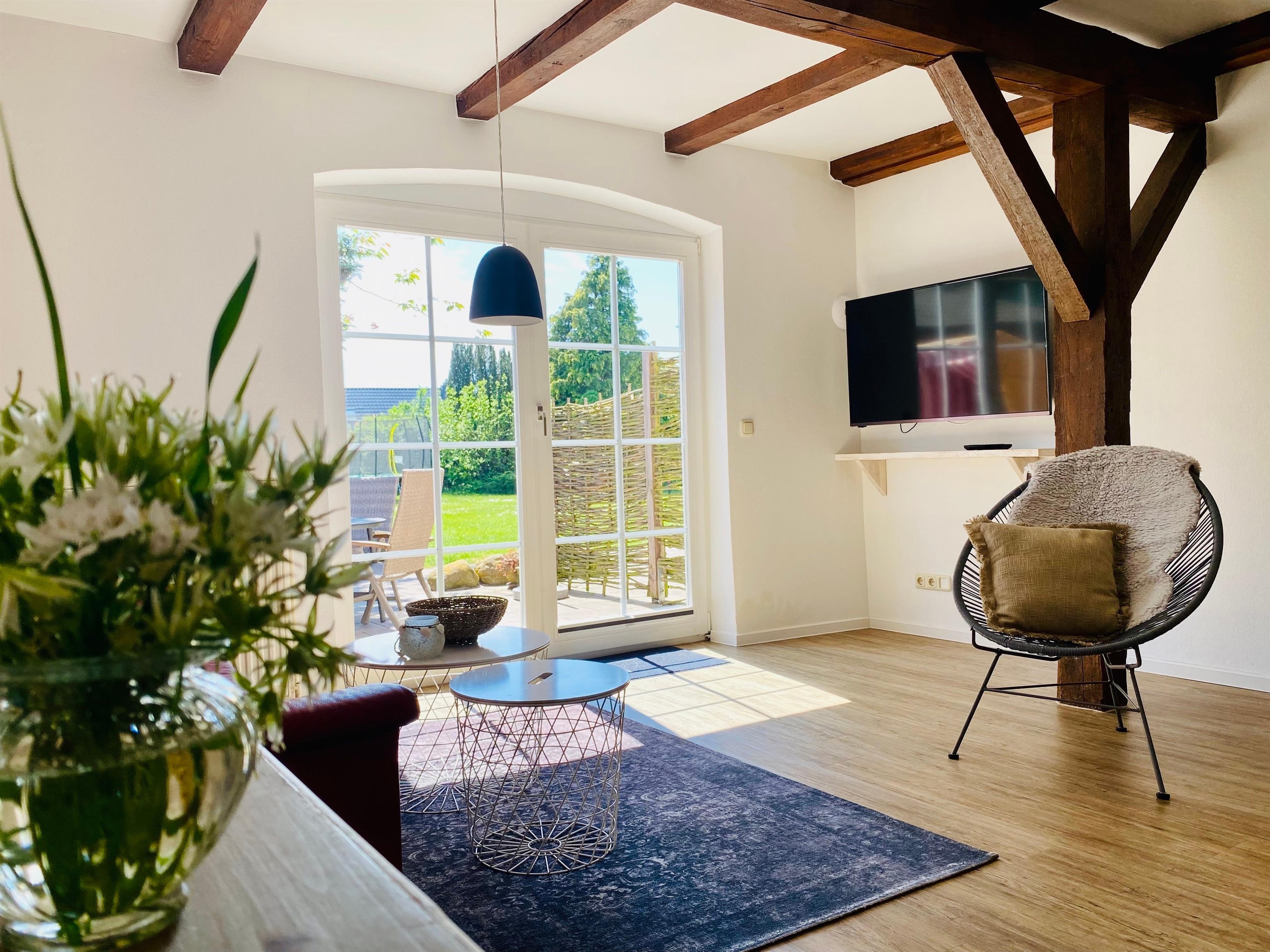 Einfach mal stranden - in der Hofbude "Landleev" auf unserem familienfreundlichen Bauernhof "Hofbude Fehmarn" auf der Ostseeinsel Fehmarn. Die Ferienwohnung ist mit ihren ursprünglichen Holzbalken besonders gemütlich. Auch auf unserem Hof findet Ihr viele Lieblingsplätze zum Entspannen oder Herumtoben.